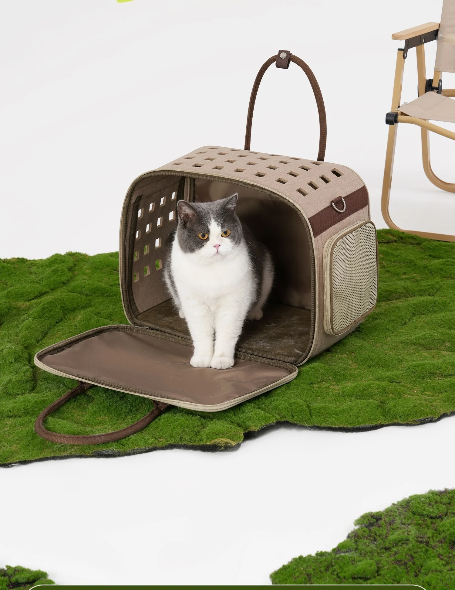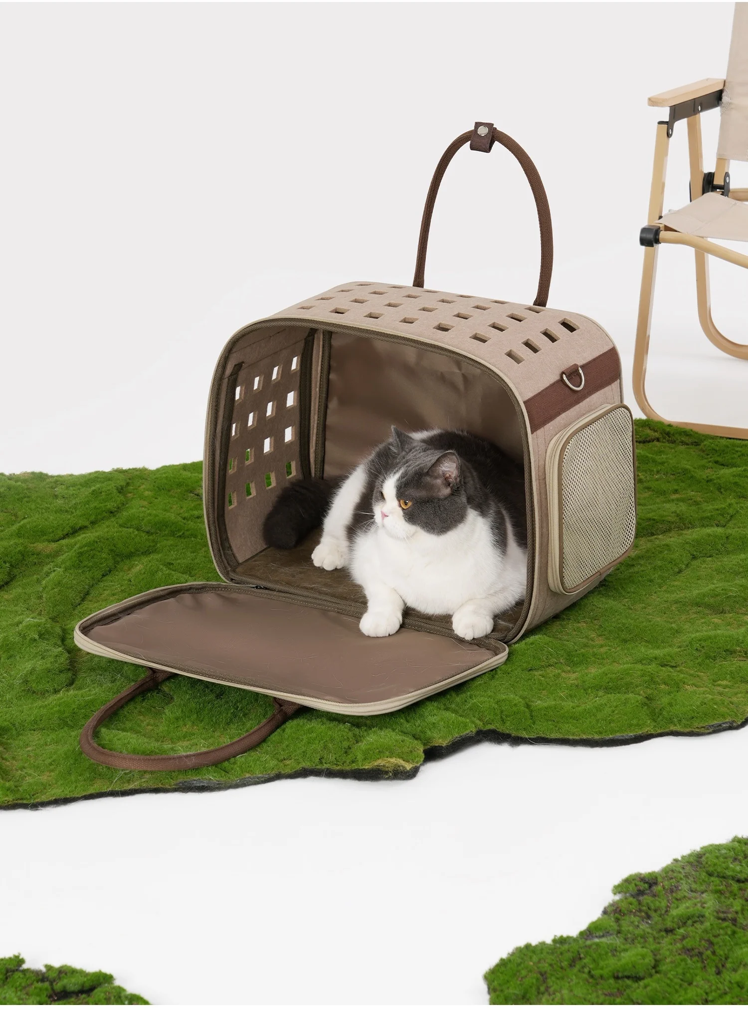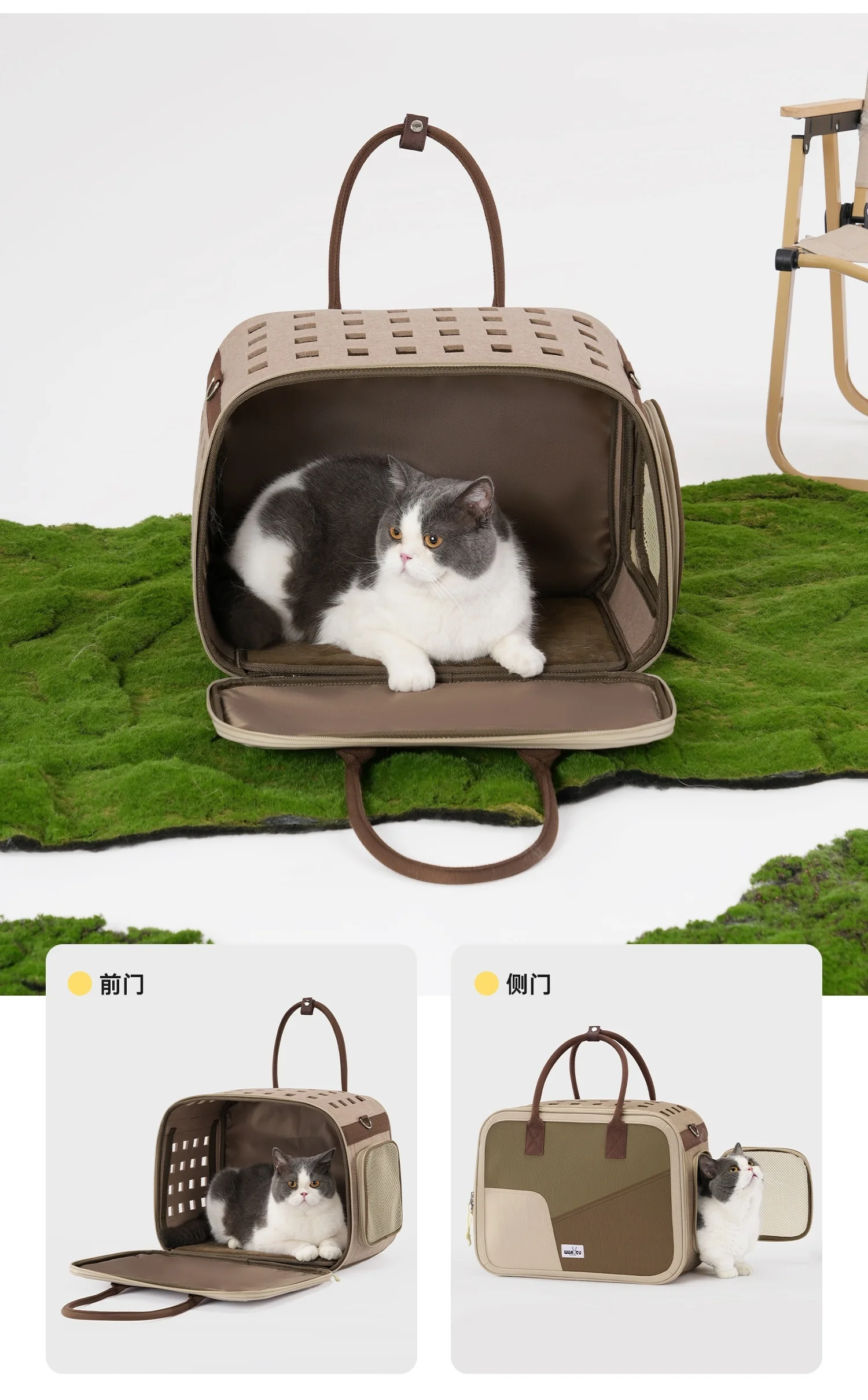 Transportín de lujo para mascotas, bolsa para mascotas de gran capacidad para perros y gatos, bolsa transportadora plegable de cara suave para gatos, bolsa portadora para perros, bandolera marrón
