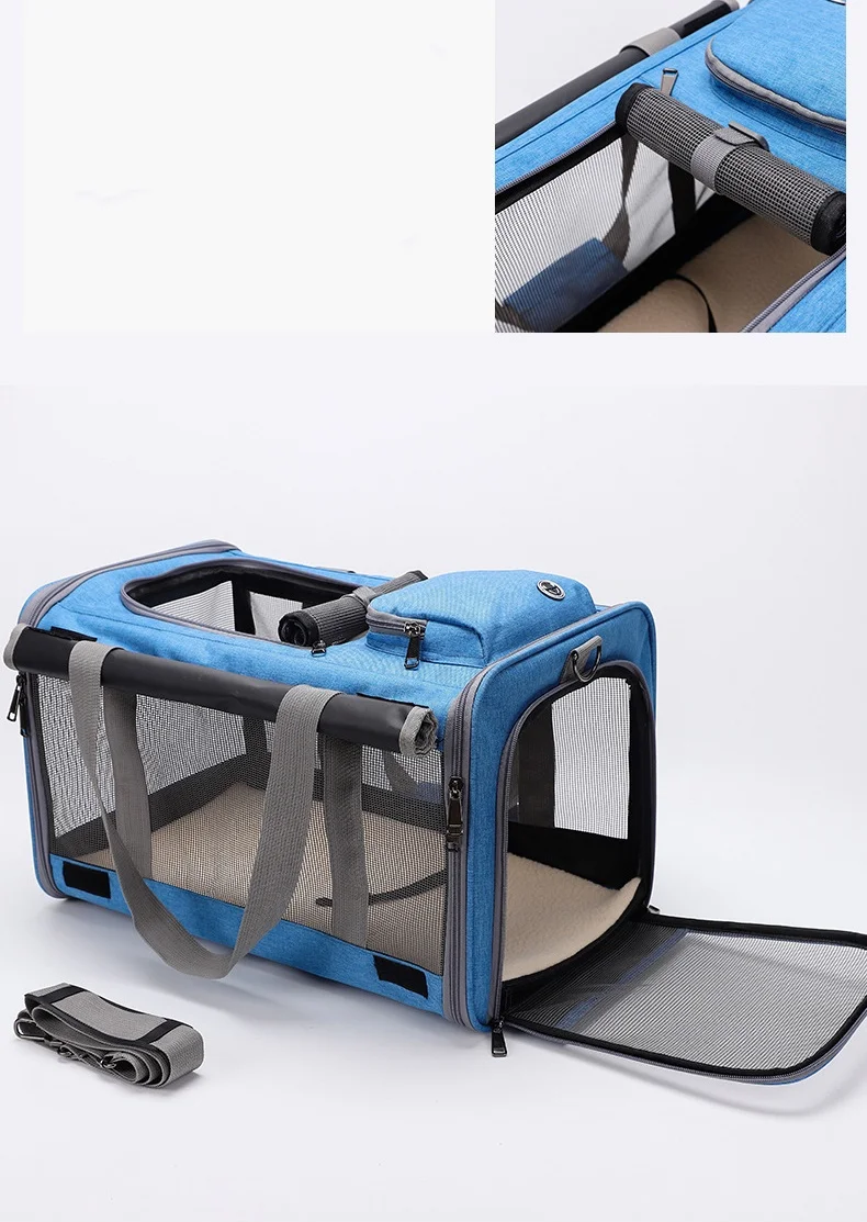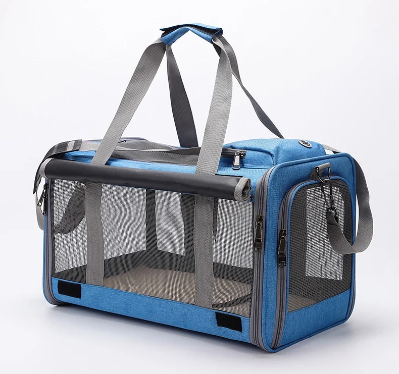 Transportín para perros para gatos pequeños y medianos, cachorros de hasta 20 libras, transparente, transpirable, de cara suave, plegable, bolsa transportadora de mascotas de viaje, gris