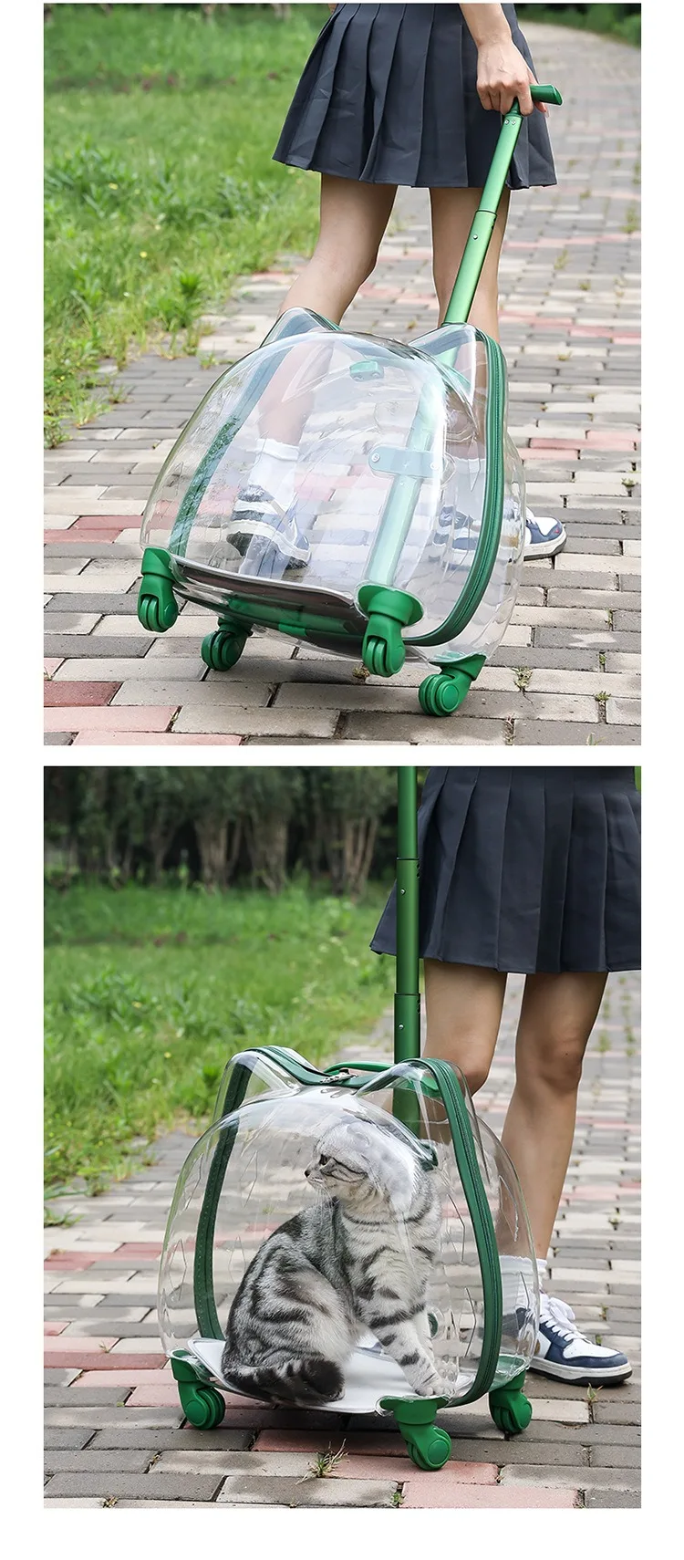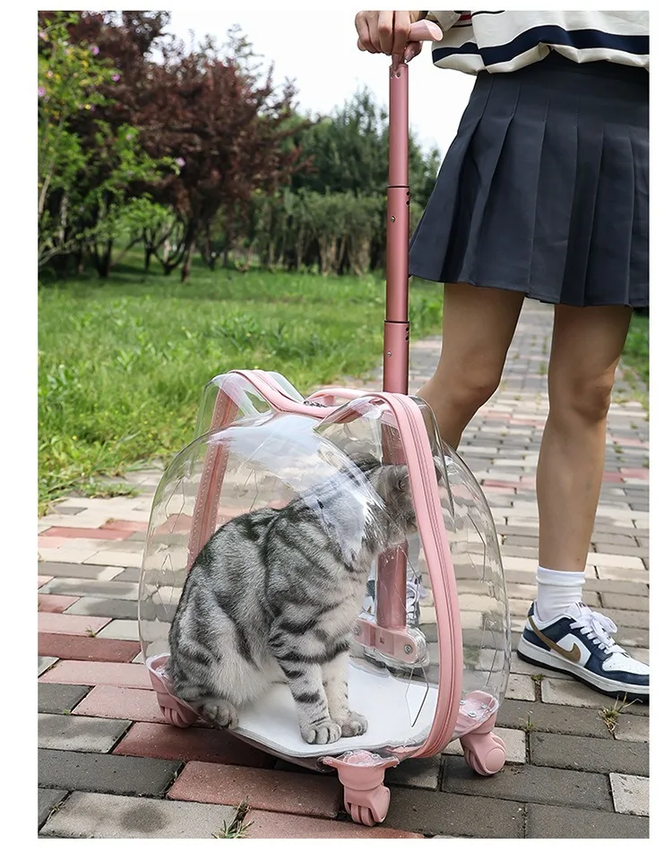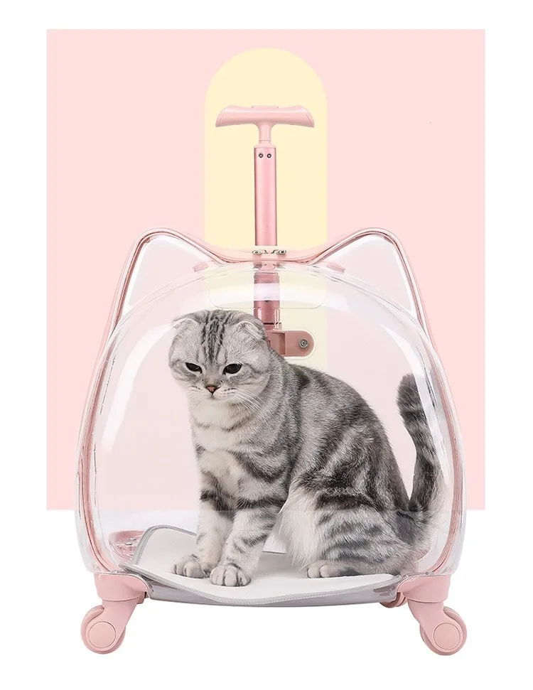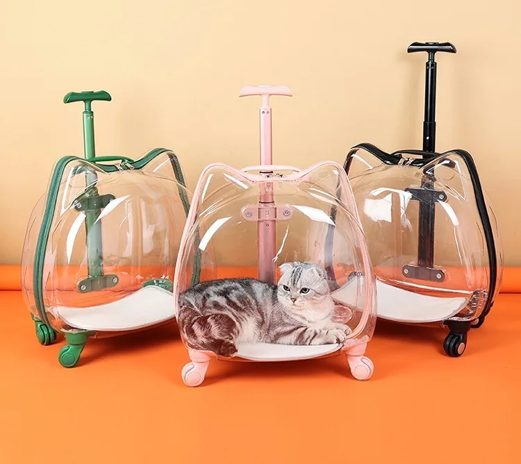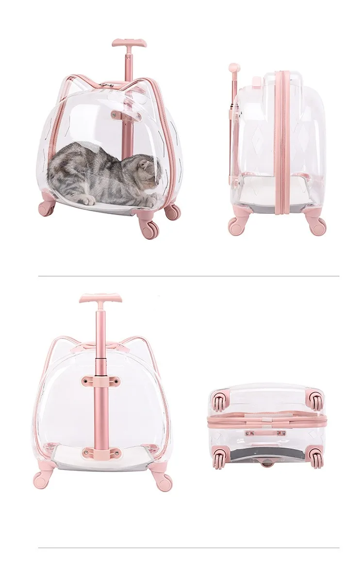 Transportín transparente para mascotas, transportadores transpirables de viaje para gatos, bolsa para perros pequeños y gatos de gran capacidad con asa de rueda, suministros para mascotas y gatitos