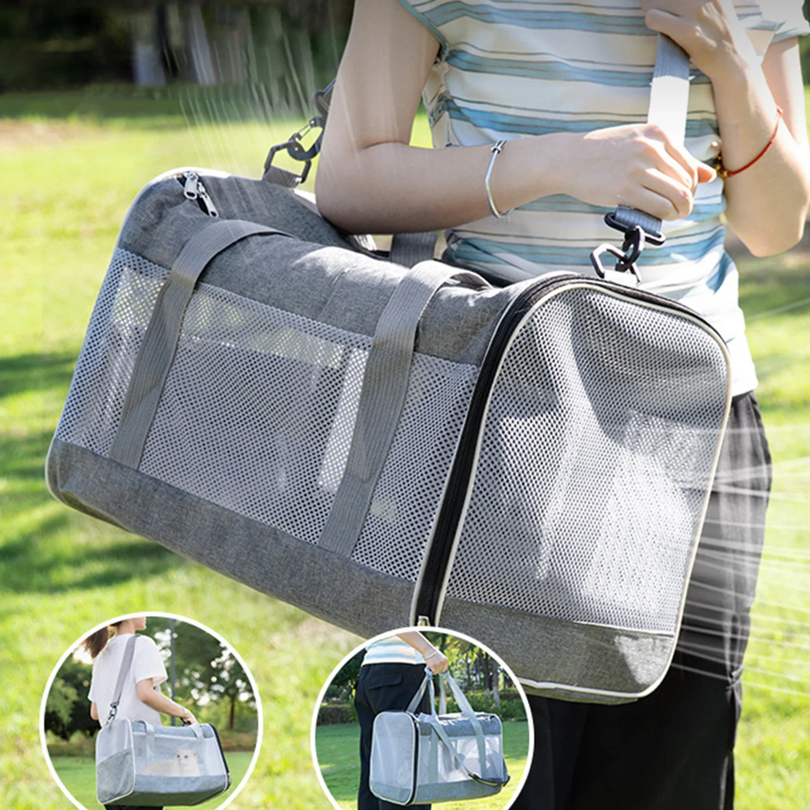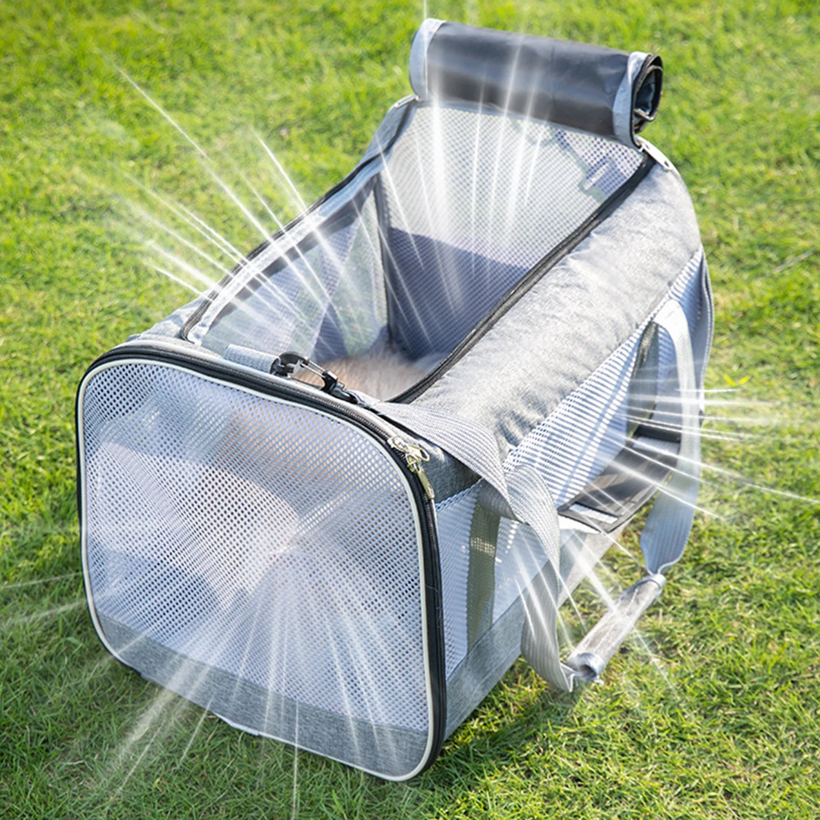 【Moda y comodidad】: el portabrocas cuenta con malla transpirable y puede abrir la parte superior y lateral, haciendo que su mascota se sienta lo más cómoda y segura posible; y malla resistente al desgaste que permite que su mascota se raye y juegue