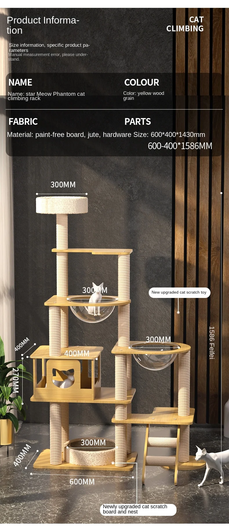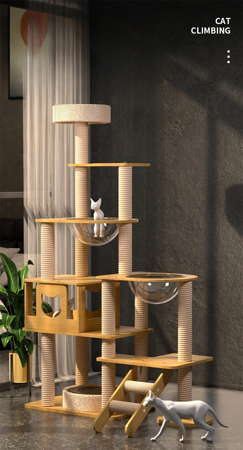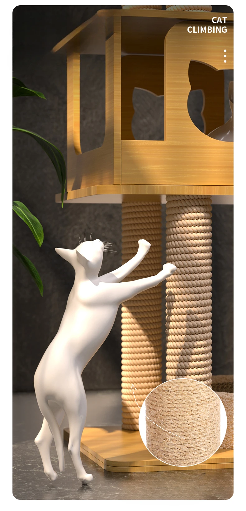 Tree Tower House para gatos grandes, garras, protección de sofá, gatos con raspadores, rascador de madera para gatos, camas y muebles