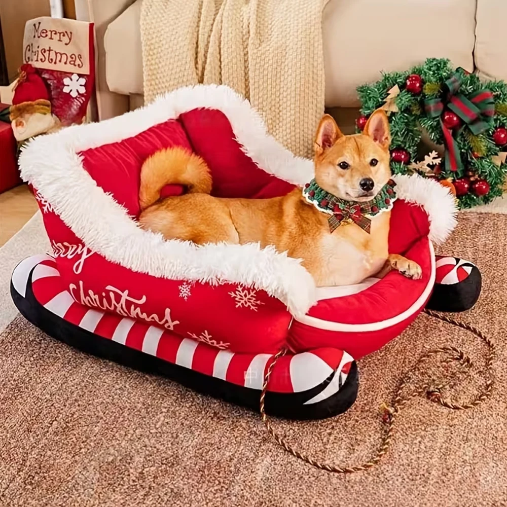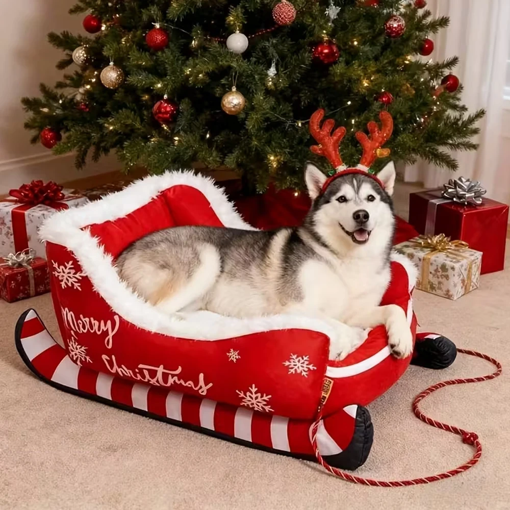 Esta cama navideña para gatos combina un diseño de trineo con un aspecto inspirado en la Navidad, ofreciendo a las mascotas una divertida zona de descanso y agregando alegría estacional a cualquier espacio habitable durante la alegre temporada navideña.