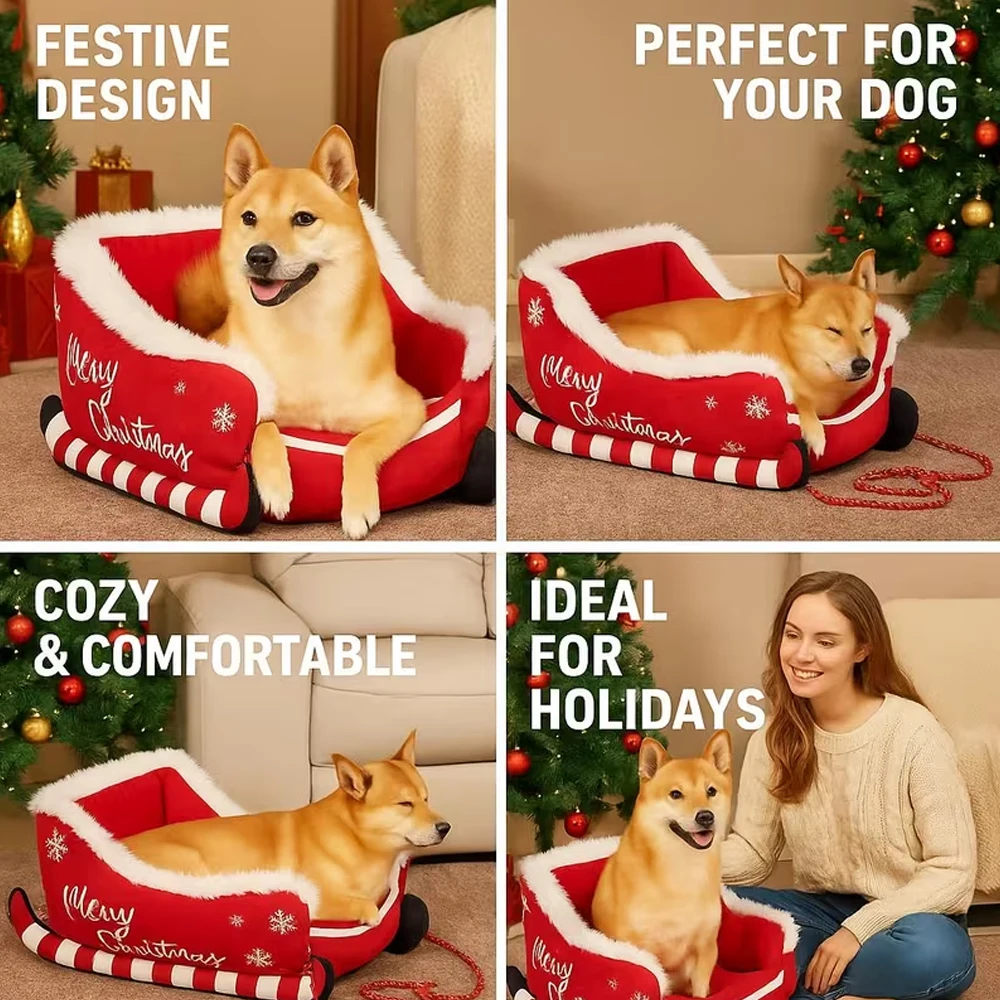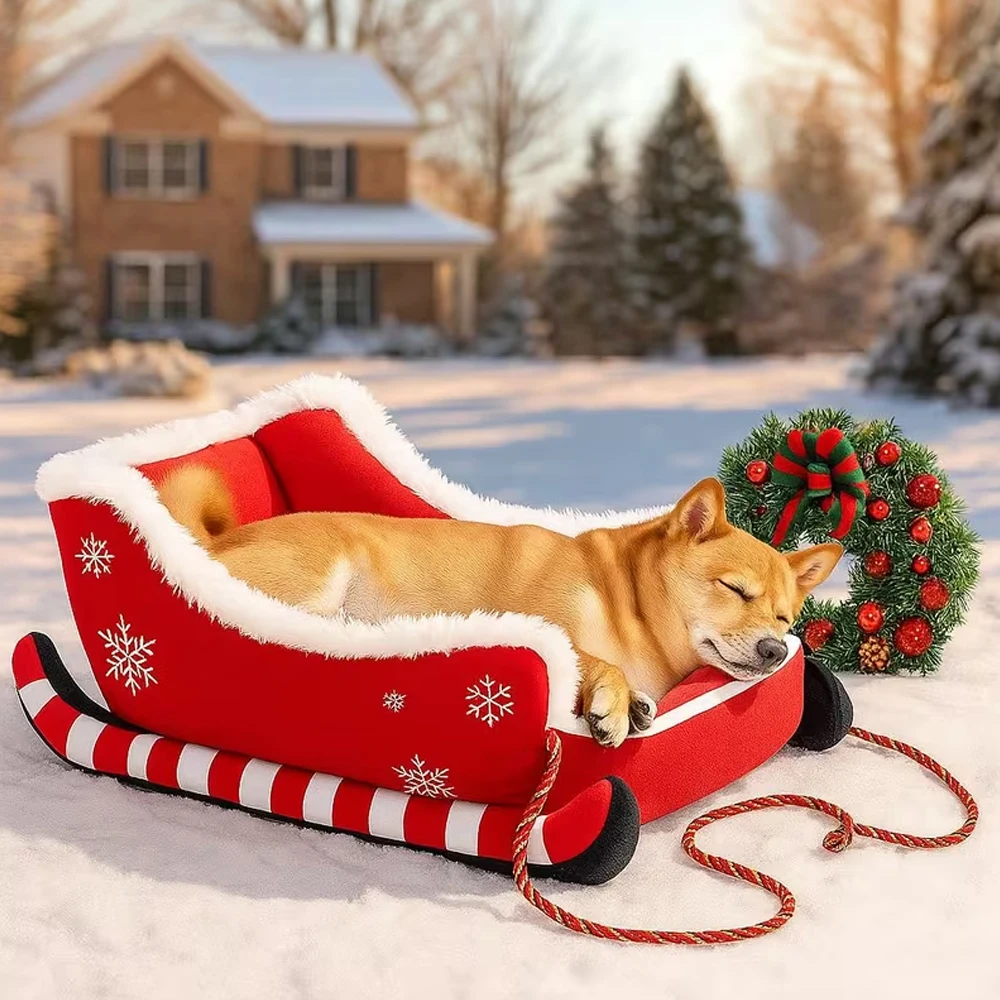 Diseñada para mejorar el sueño invernal, la cama navideña para perros cuenta con un material de felpa grueso que retiene el calor de manera efectiva, brindando a las mascotas calidez constante y creando una marca de descanso para las noches frías en interiores.