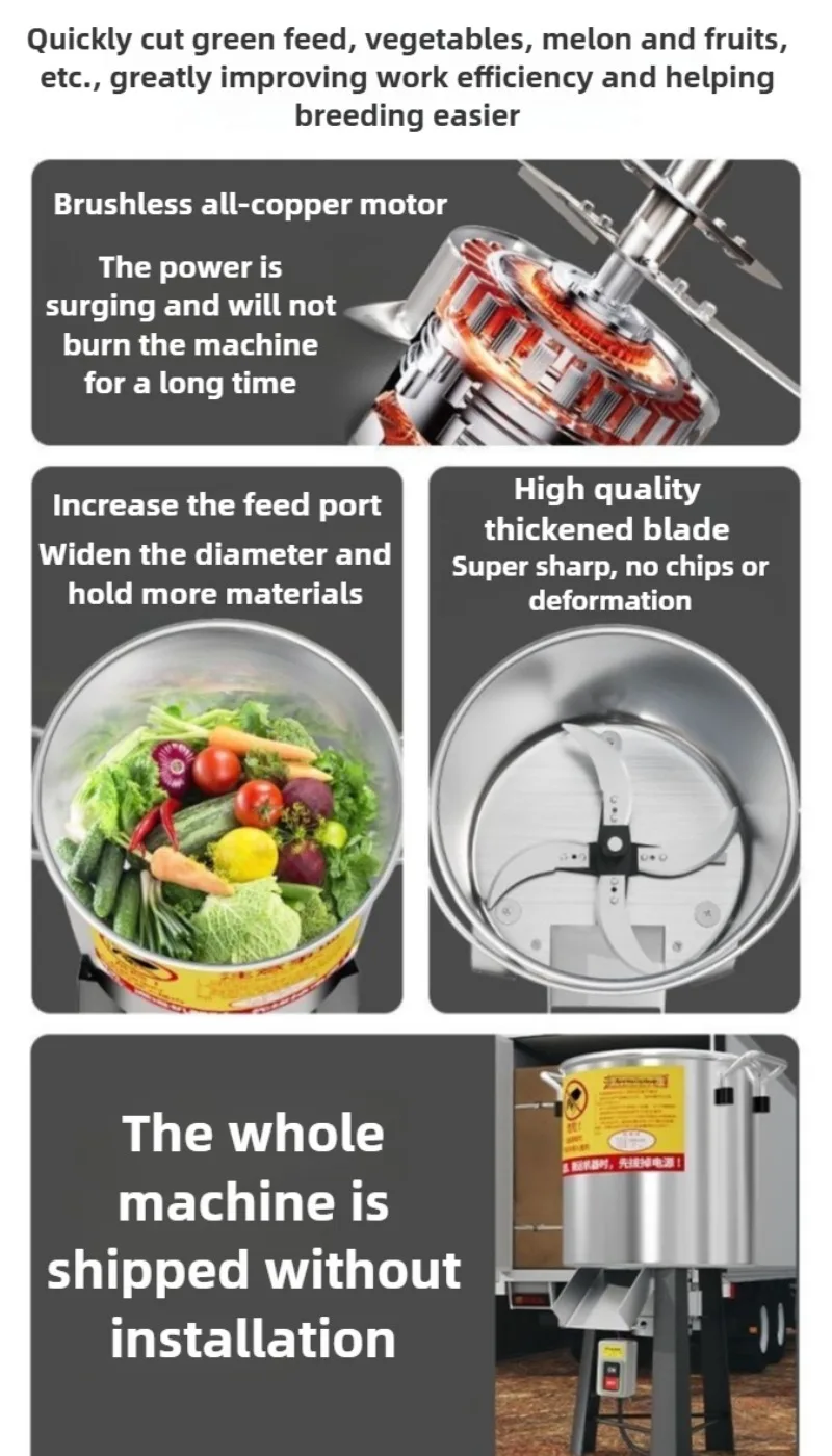 Trituradora de verduras para cría de granja, trituradora eléctrica de verduras de acero inoxidable para pollo, pato, alimentación de ganso, cerdo, cubo, suministro para aves de corral