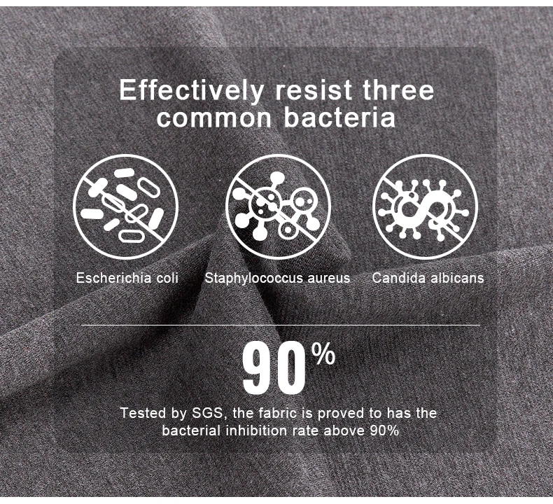 1. Tela antibacteriana: SGS probada por, la tela resiste eficazmente las bacterias y la desodorización.