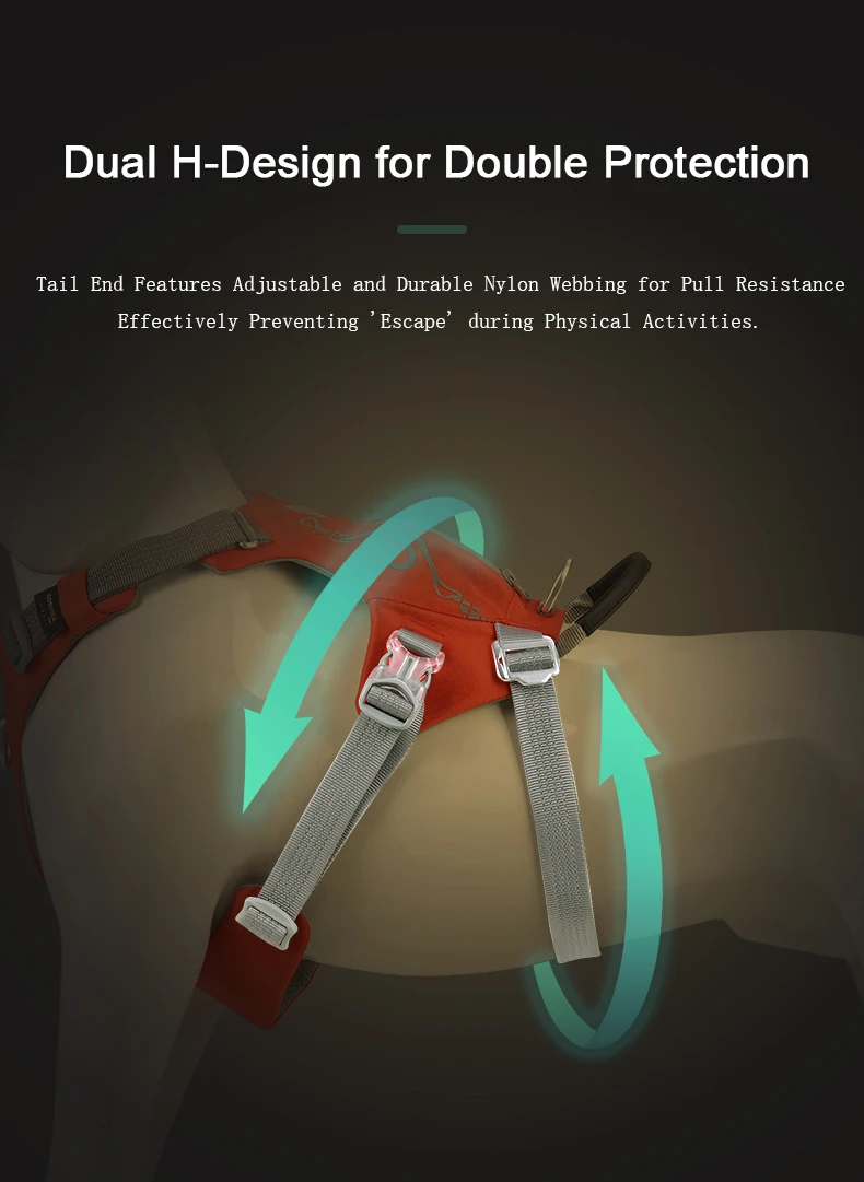 1. 【Diseño de protección doble H】-Di adiós a los "escapes" de mascotas. Nuestro arnés está elaborado con un diseño único de doble H para evitar escapadas inesperadas.