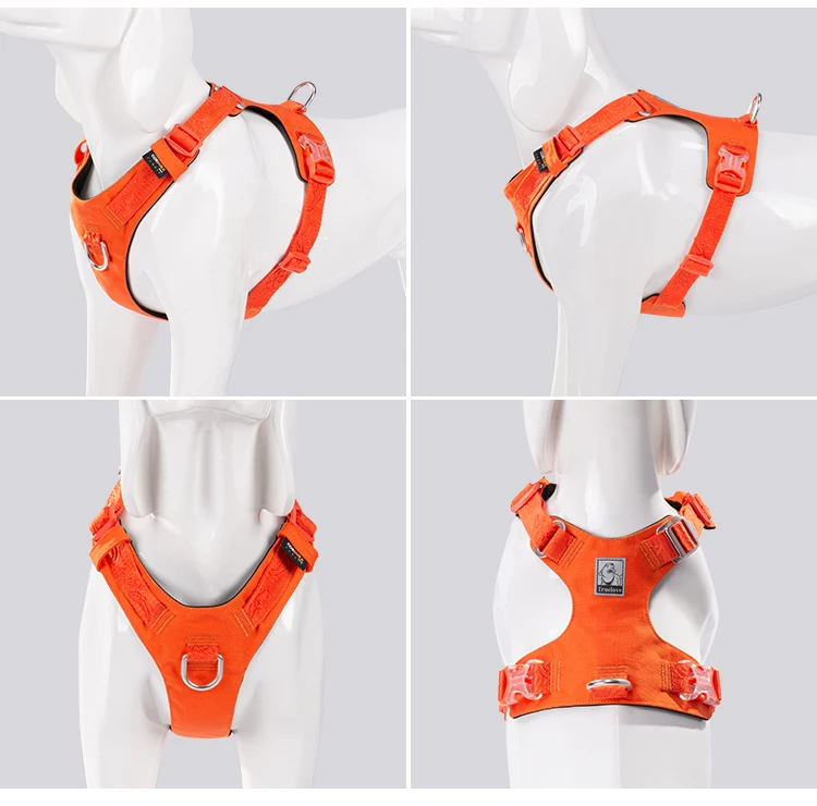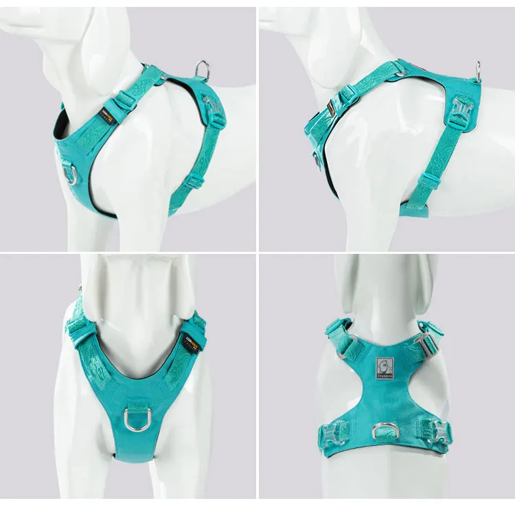 1.Hecho de resistente al aguaFibra de nailon 66Tela y forro de cuero de gamuza de microfibra, que hacen que el arnés sea liviano, cómodo y transpirable.