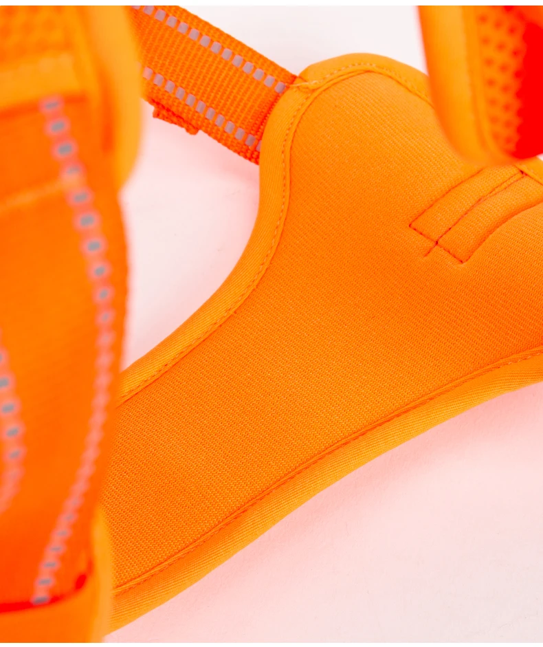 2.ERGONOMIC DESIGN - Ease of use putting on and taking off harness. Comfortable lightweight mesh lining with soft sponge padding in chest and belly