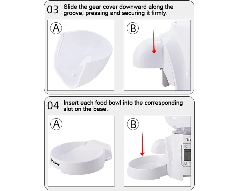 Este dispositivo de alimentación automática para mascotas está diseñado para satisfacer las necesidades de gatos, perros pequeños y medianos.Ofrece varias funciones convenientes para garantizar que sus mascotas se alimenten correctamente y a tiempo.