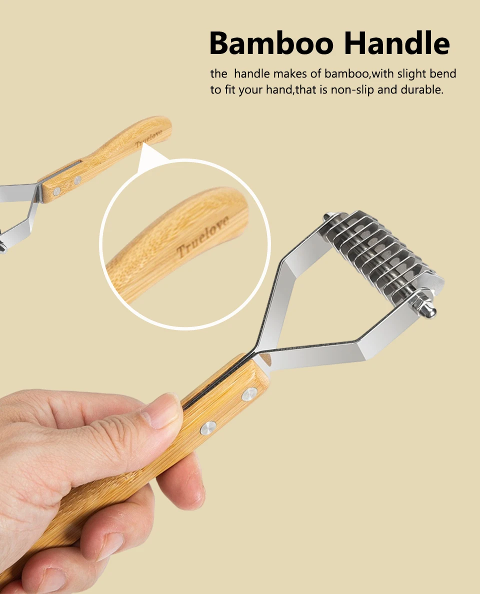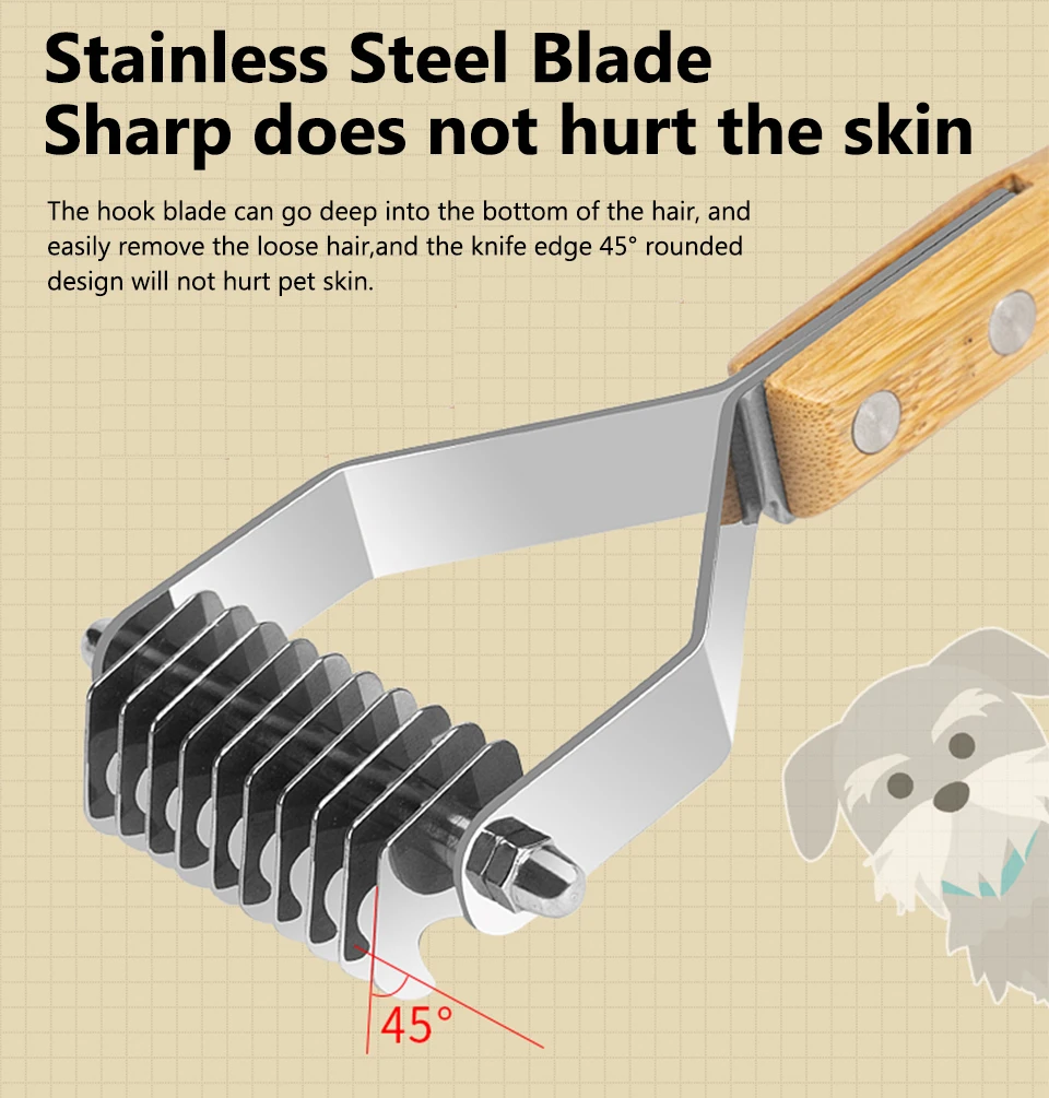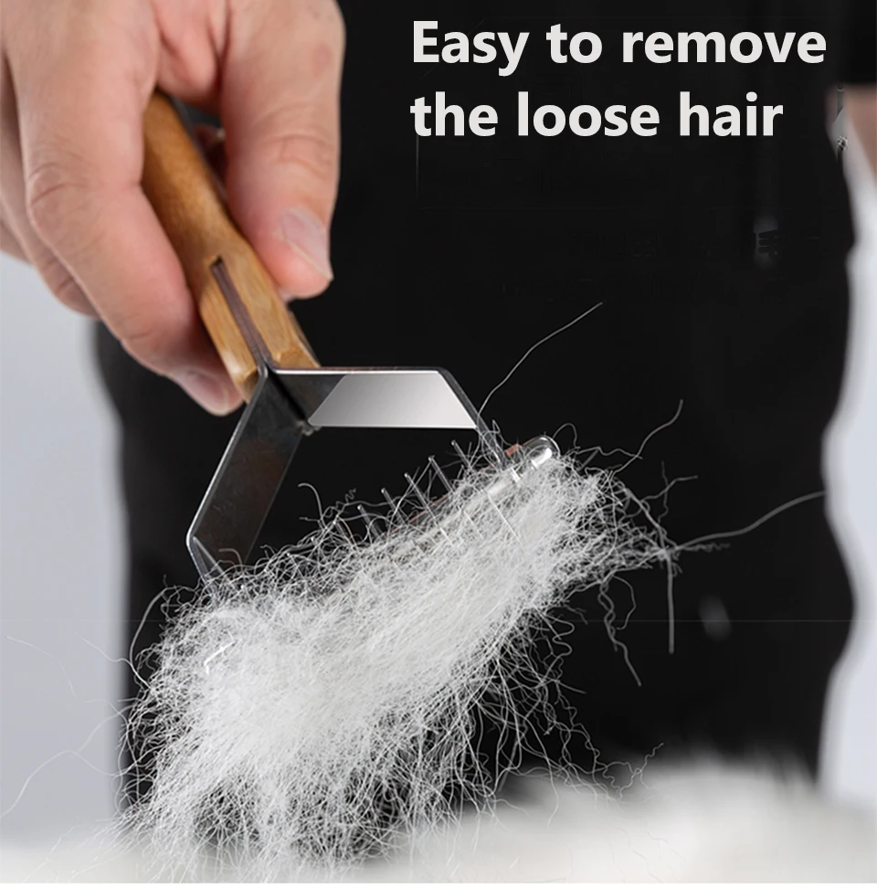 1. 【Dientes de acero inoxidable】 -- Hemos diseñado dientes finos redondeados en un ángulo de 45 °, penetran fácilmente y con seguridad en la capa interna para cepillar el cabello desprendido.