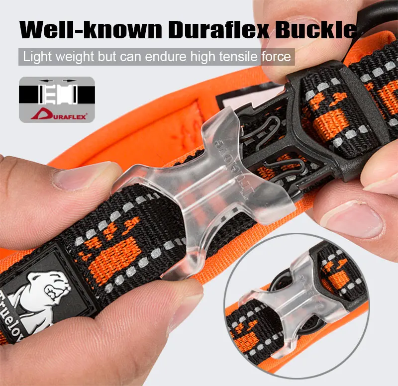 Material:Correa de nailon de primera calidad y acolchado de neopreno suave, anillo de aleación de aluminio duradero sólido, costura reflectante