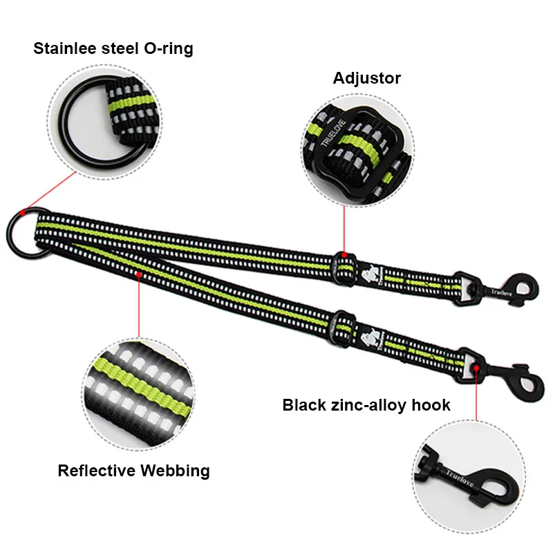 Tipo:Truelove correa de perro doble ajustable reflectante para dos perros