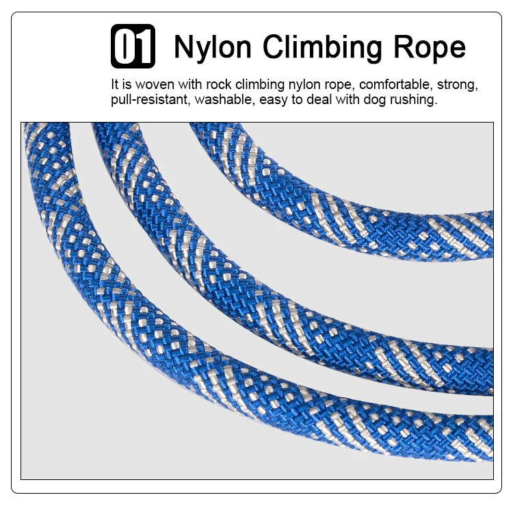 【FUERTE Y LIGERO 】-Esta resistente correa de perro de alta calidad está hecha de cuerda de nailon de alta resistencia, un anillo de metal súper duradero y los nudos están atados con una cubierta de cuero. La cuerda proporciona la máxima durabilidad y un agarre cómodo.