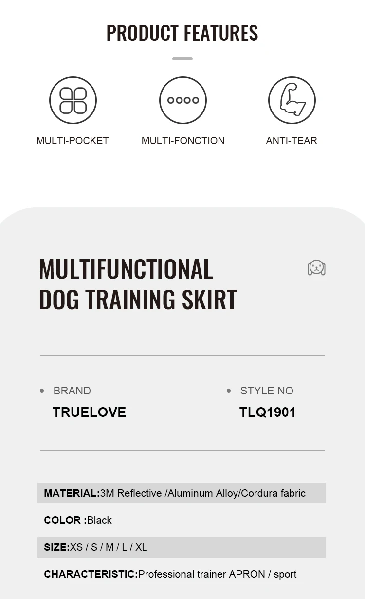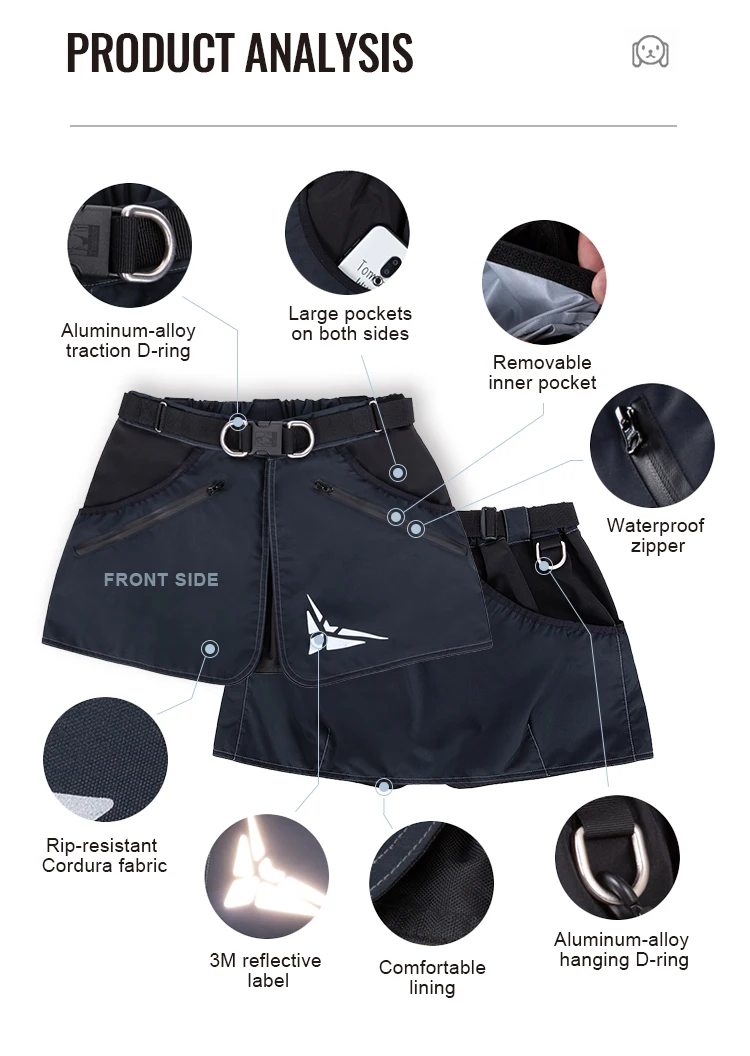 【Material】: La falda de entrenamiento para perros está hecha de tela de nailon Dupont 160D, agua, transpirable y duradera.