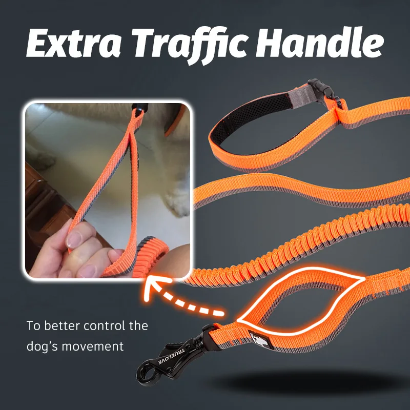 3.Las correas elásticas de nailon amortiguan el tirón de las ráfagas del perro.