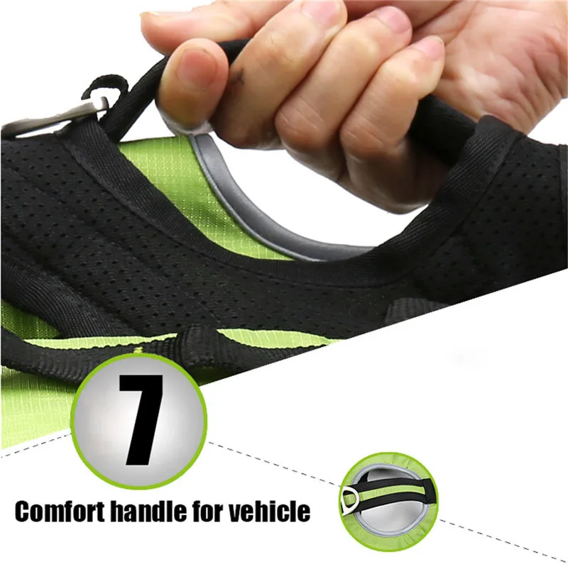 Oxford impermeable, cremallera impermeable de bobina invertida SBS,Forro de malla sandwish liviano, acolchado de esponja suave, hebilla de plástico, anillo en D de metal, reflectante, desmontable (arnés y bolsa)