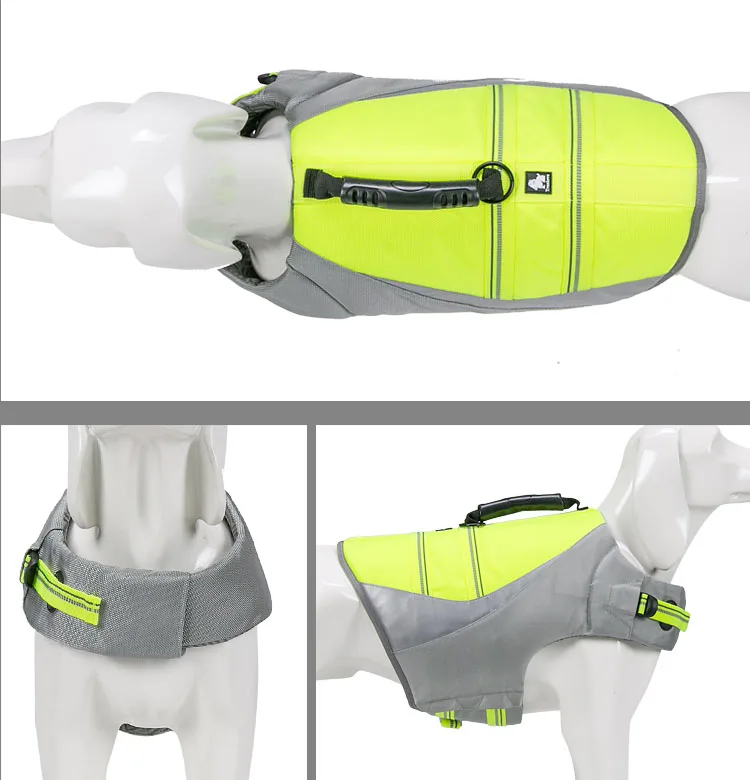 1. Chaleco salvavidas construido con material Oxford 1680D resistente a la abrasión y probado en el tiempo.El reflector de 2,3 M mantiene una buena visibilidad con poca luz.3. Anillo de acero inoxidable para sujetar la correa4. El mango fuerte ayuda al perro a salir del agua y puede usarse como cinturón de seguridad, garantizando la seguridad del perro en el coche.5. Cierre ajustable y hebilla Duraflex de liberación rápida para diferentes tamaños de perros y esFijado y seguro permanentemente6. El forro de nailon es transpirable. En la etiqueta de lavado se puede escribir la información de contacto del propietario, evitando la pérdida de perrosTamaño