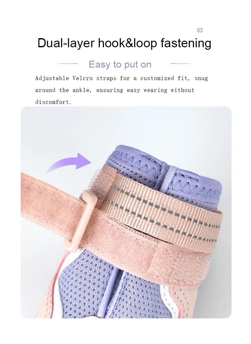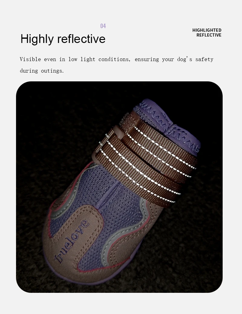 2.【Correa reflectante】--Eleve la seguridad de su mascota durante las aventuras nocturnas con la característica adicional de una correa reflectante.Estos zapatos no sólo mejoran la visibilidad, sino que también brindan seguridad esencial.