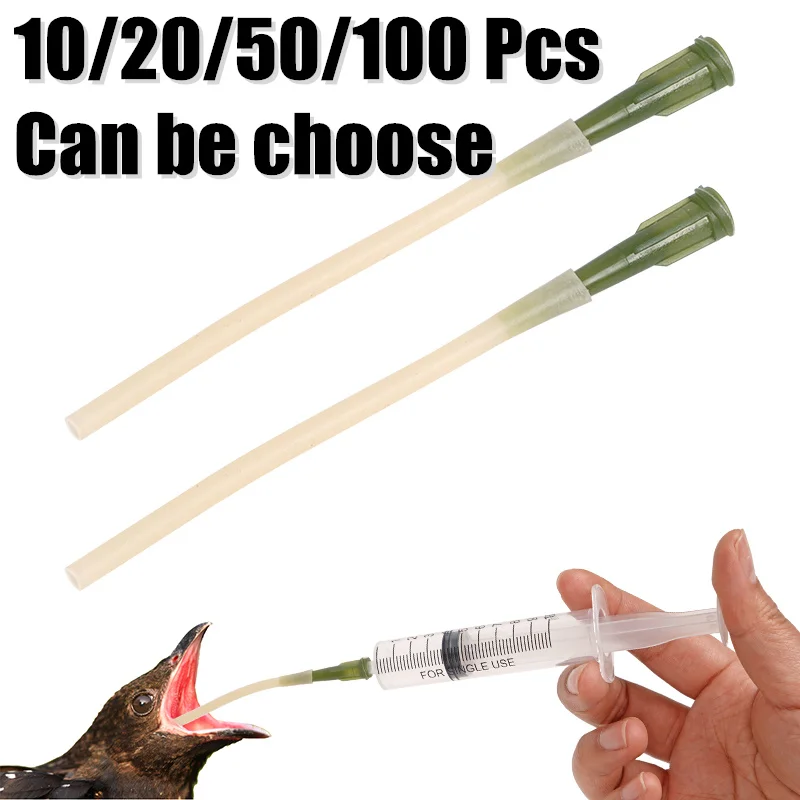 Tubo Largo de Silicona Suave para Pájaro Pequeño, Manguera de Inyección de Aguja Oral, Accesorio de Plástico para Pájaro, 10/20/50/100/, sin Jeringa