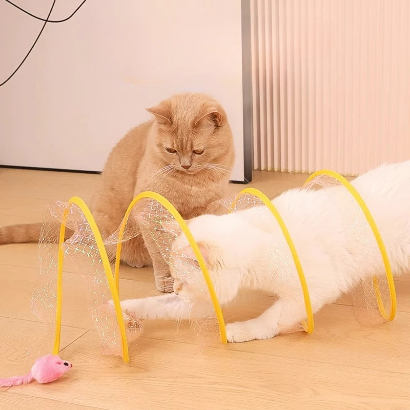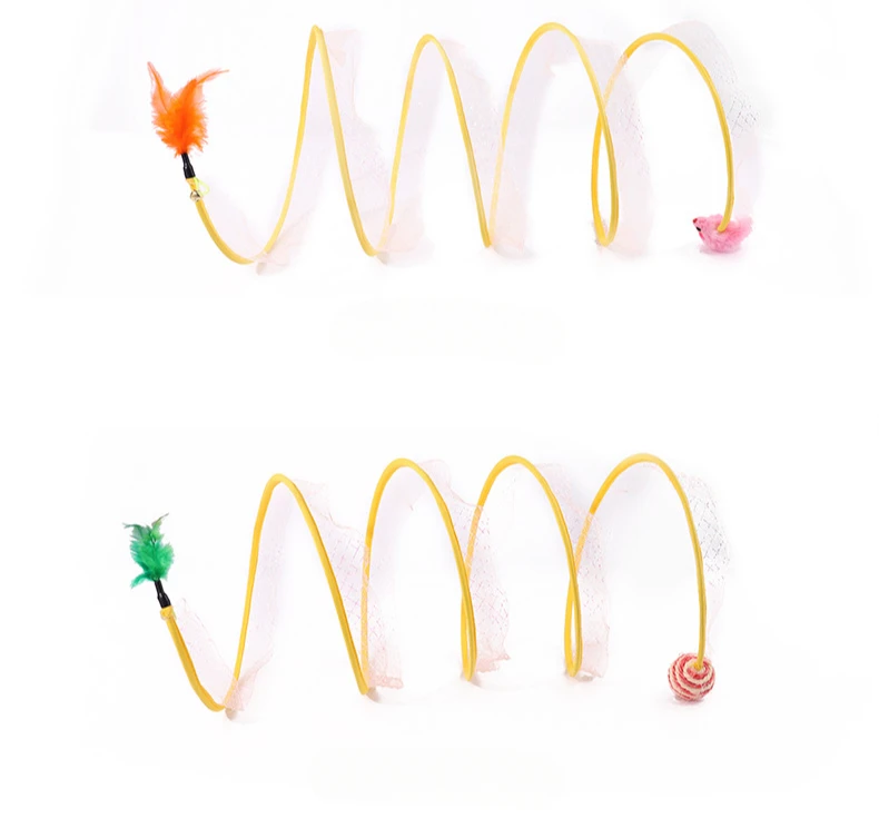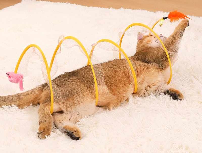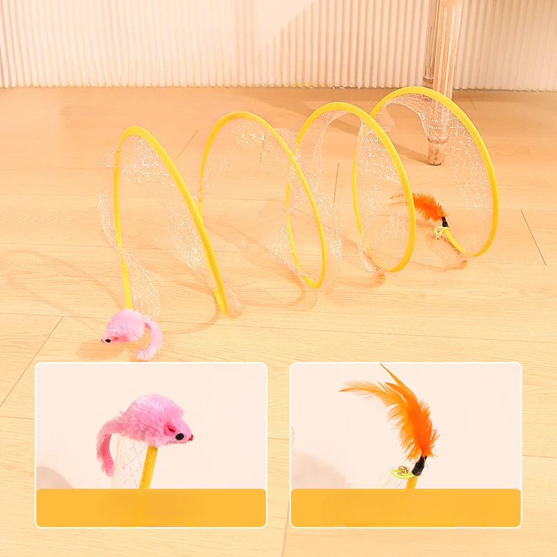 Tubo de túneles plegable para gatos con plumas, suministros interactivos portátiles para interiores para mascotas, juguetes para cachorros y gatitos, artículos de túnel plegables