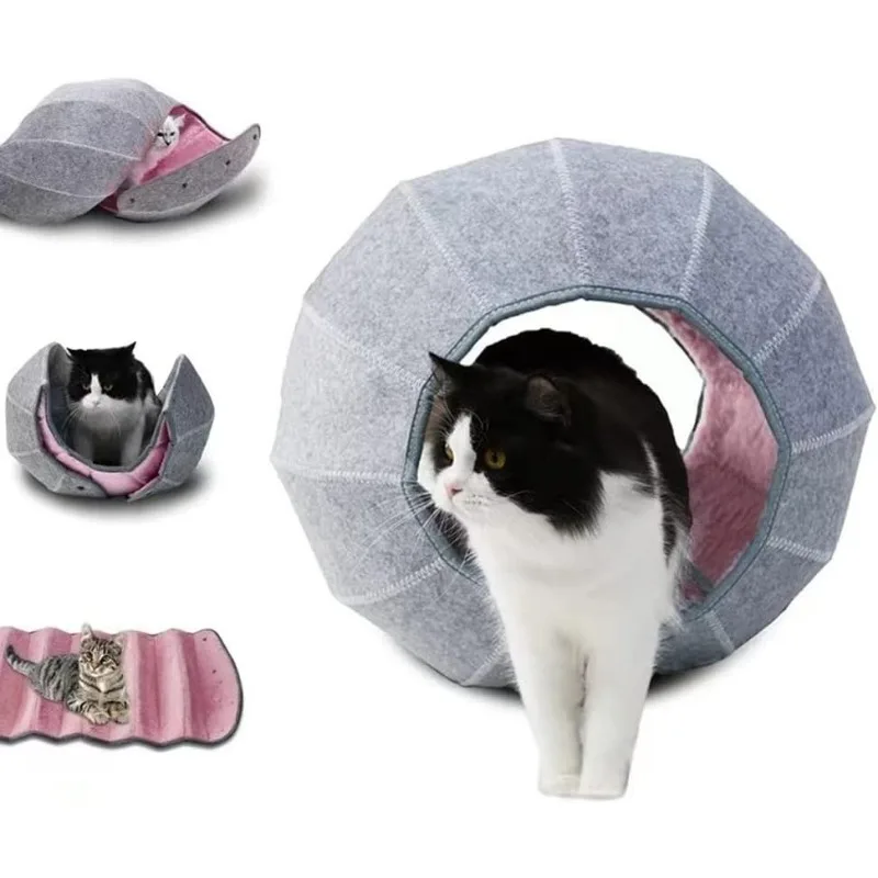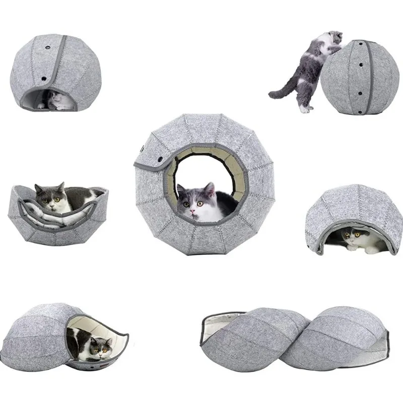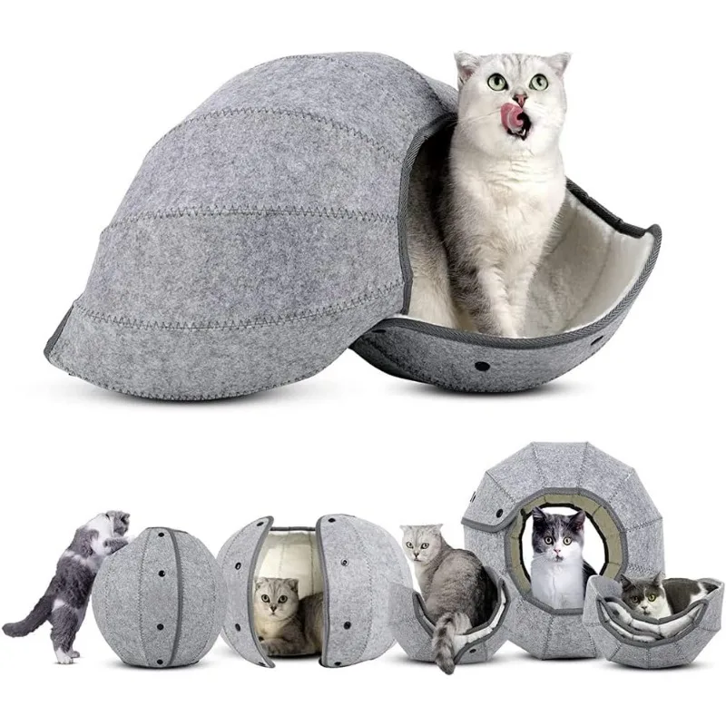 Quítalo con tu gato: cama para gatos hecha de tela interior de felpa de primera calidad, tacto suave, cálido y cómodo.Capa exterior hecha de tela de fieltro de lana duradera, resistencia al desgaste, resistente a los arañazos y a la humedad.Fácil de limpiar, plegable, fácil de transportar, no ocupa mucho espacio.