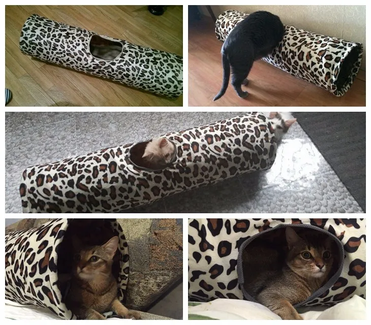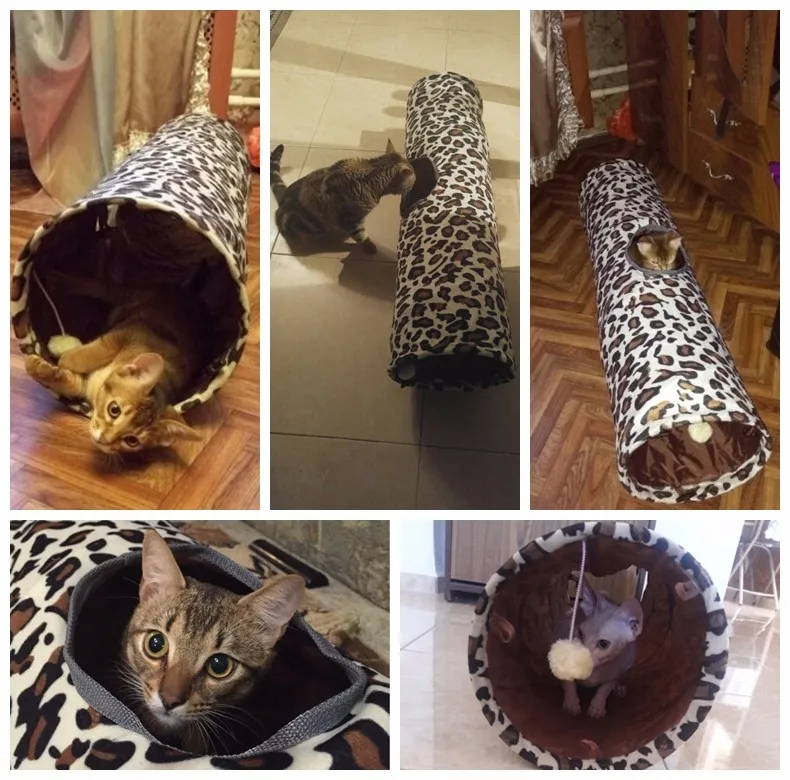 Túnel para mascotas Túnel de juego para gatos estampado de leopardo Crinkly Cat Fun túnel largo juguete de juego para gatitos Túnel de juego de conejo plegable juguete para gatos a granel