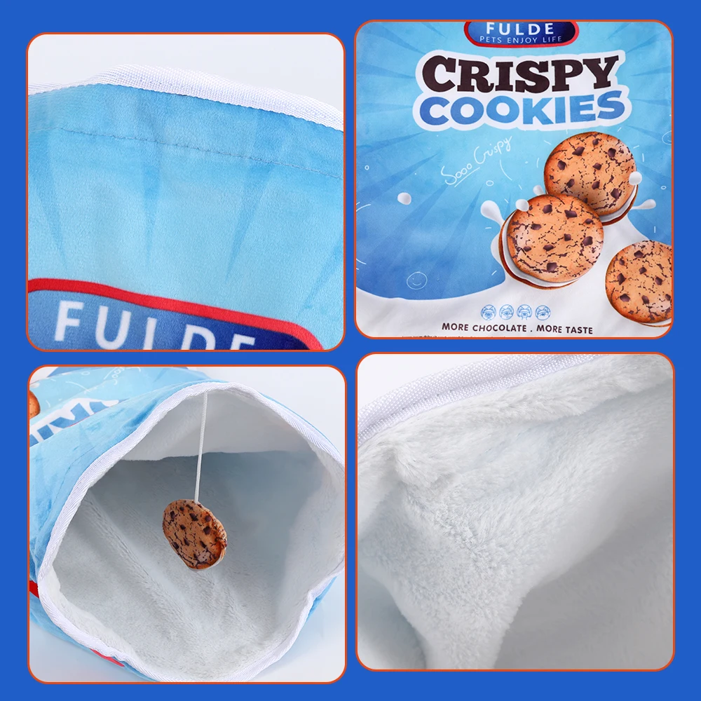 Engaging Cat Tunnel Toy: Encourage your cat's natural instincts with this playful tunnel, made with crinkle paper that adds an auditory element to their games. It’s easy to store thanks to its foldable design, and the food-themed prints add a touch of whimsy