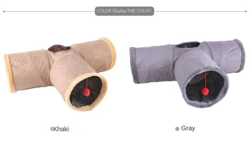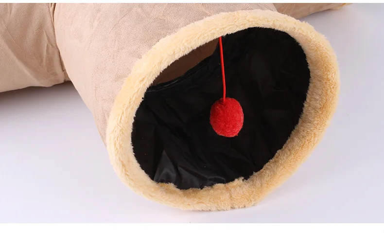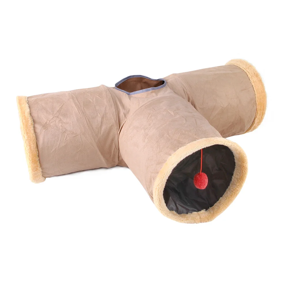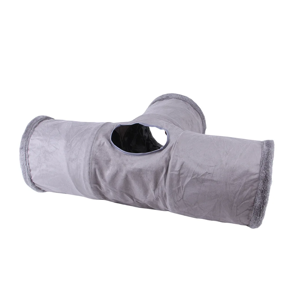 Túnel plegable de ante para gatos, juguete interactivo con bola y tres agujeros, suministros para mascotas