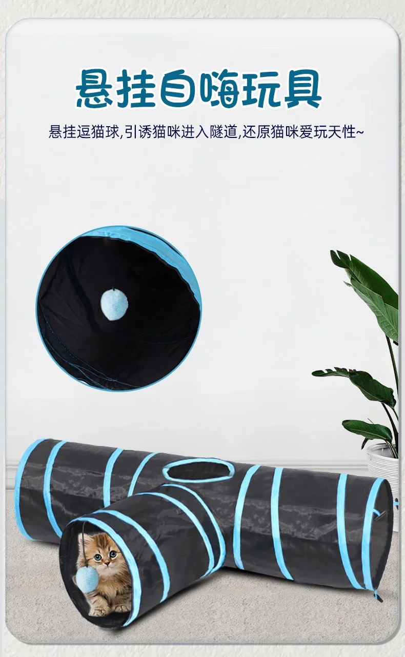 Túnel plegable para gatos, juguete, taladro, agujero para gatear, bolsa de papel con sonido, autoelevación, calmante y evita la casa, nido para gatos