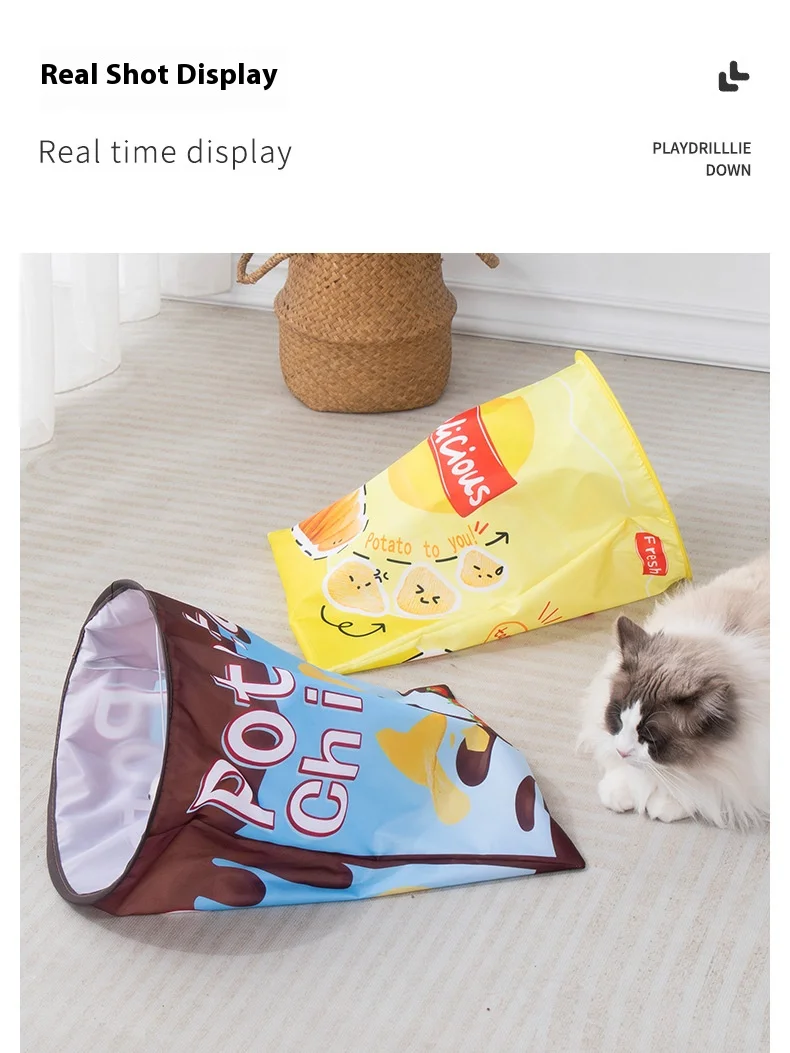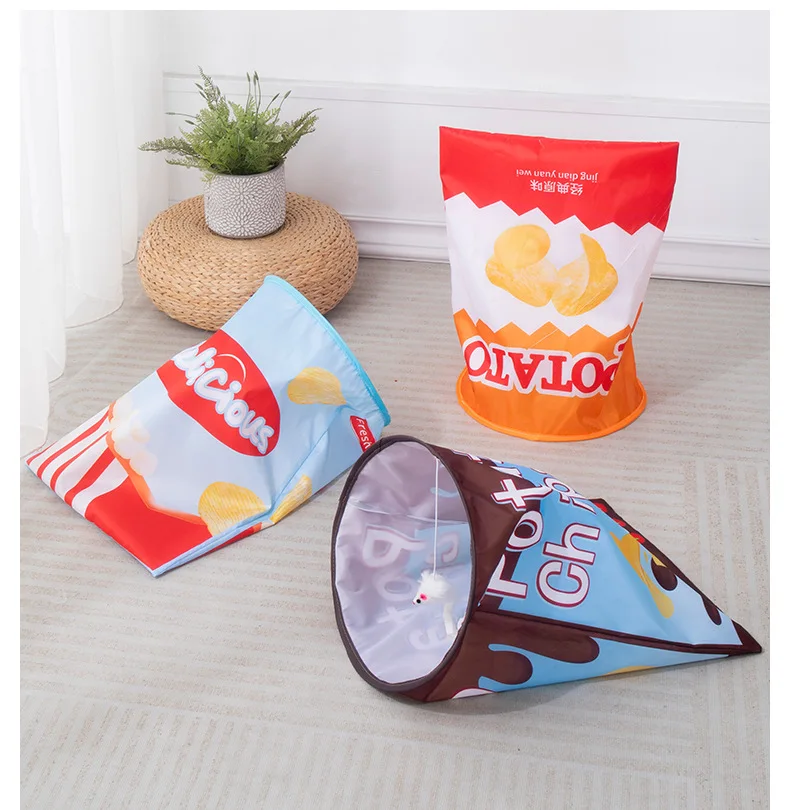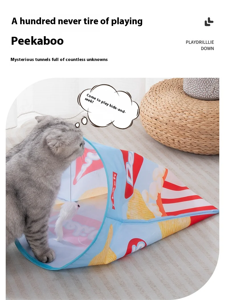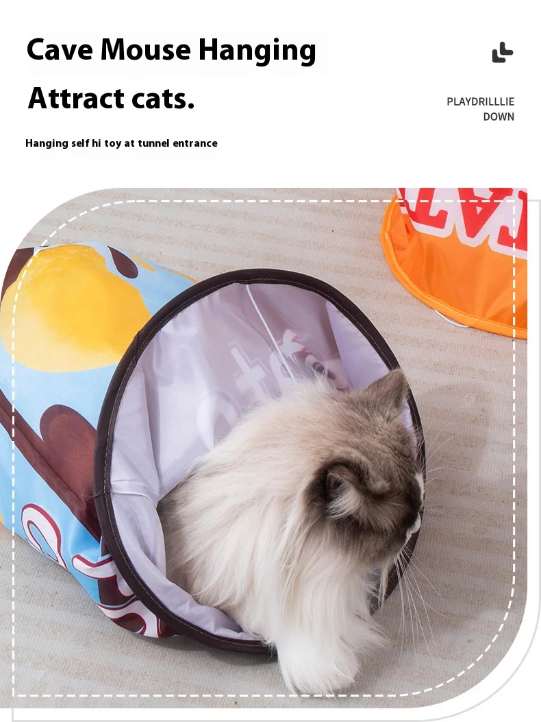 Túnel plegable para patatas fritas para gatos, juguetes de entrenamiento interactivos para mascotas, suministros divertidos para juegos de gatitos, juguete interior para mascotas, cubo de taladro
