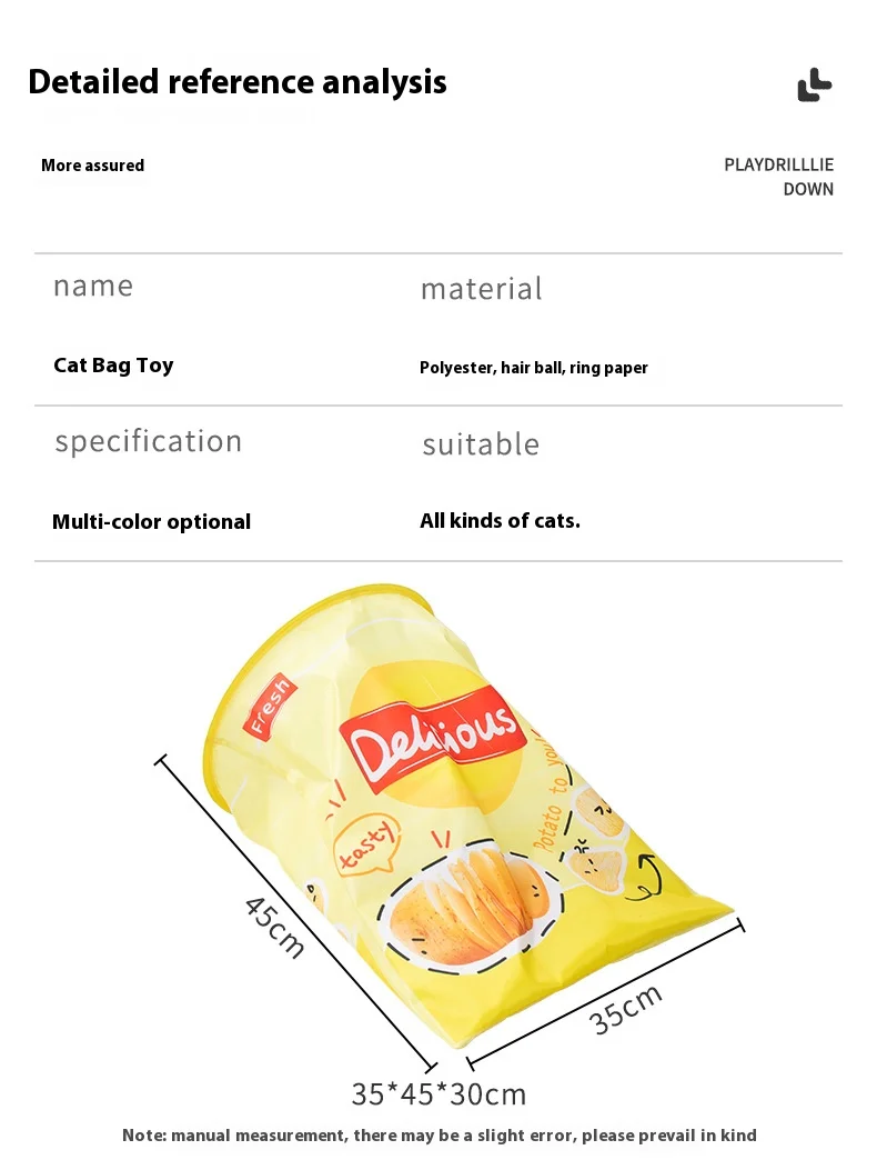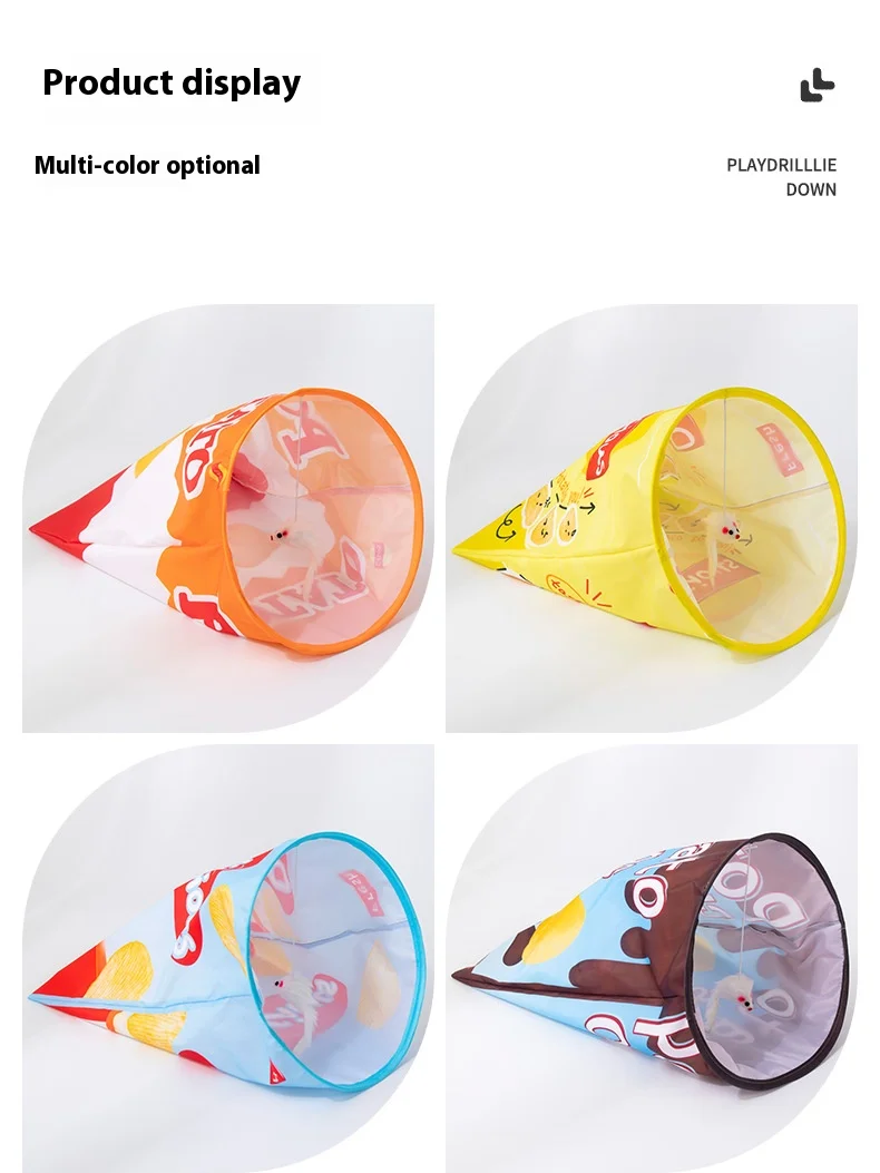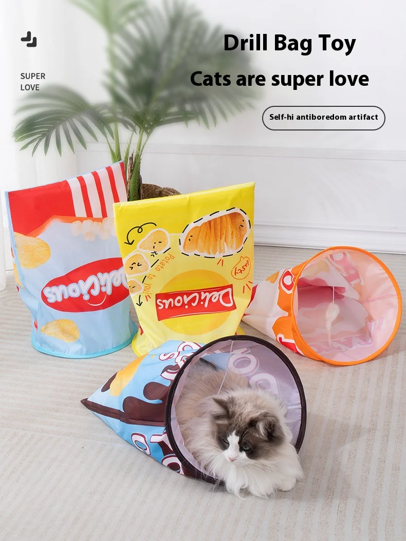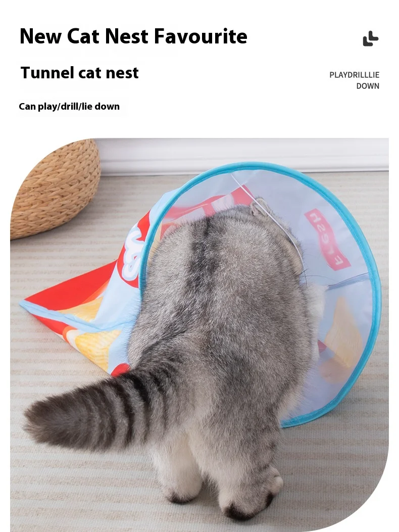 Túnel plegable para patatas fritas para gatos, juguetes de entrenamiento interactivos para mascotas, suministros divertidos para juegos de gatitos, juguete interior para mascotas, cubo de taladro