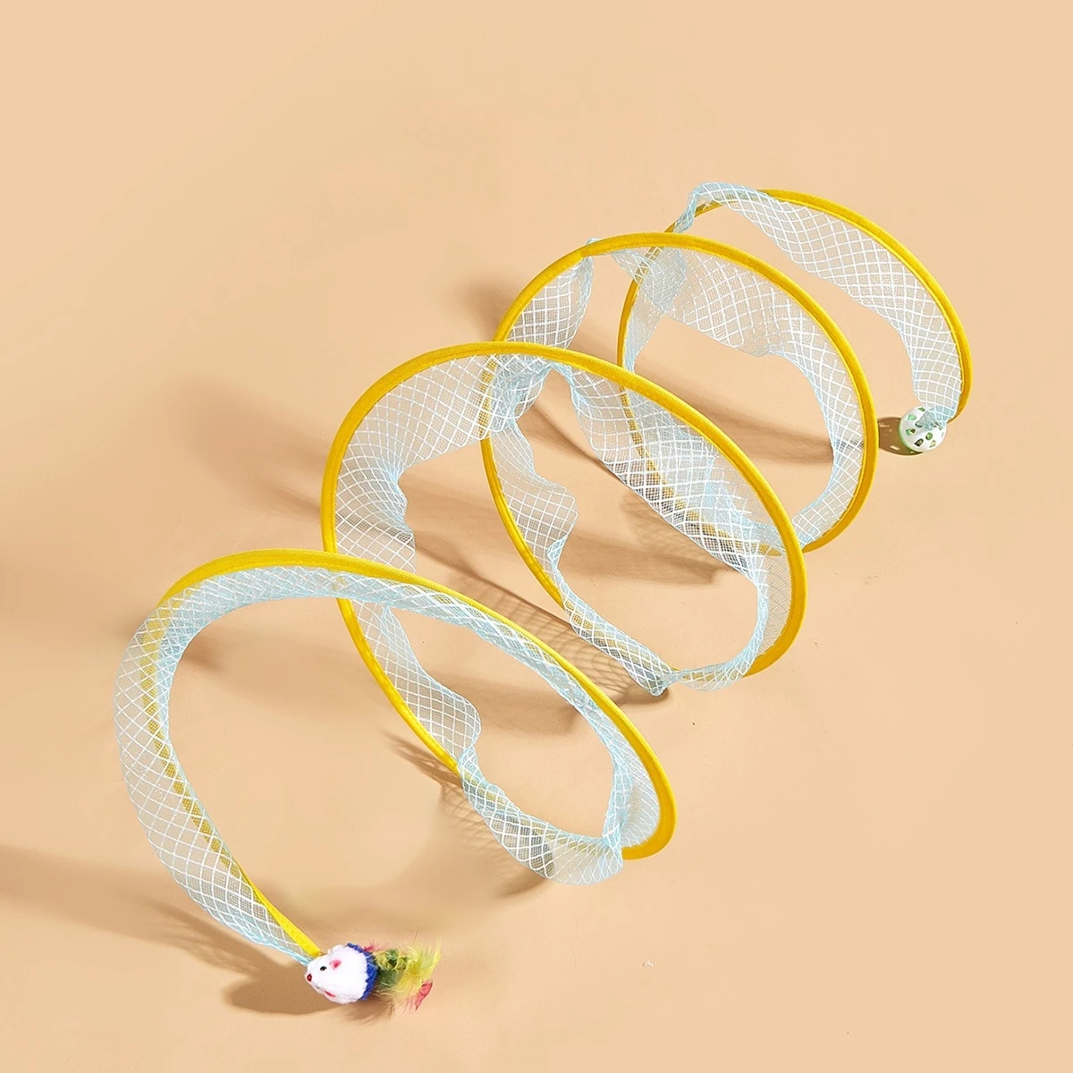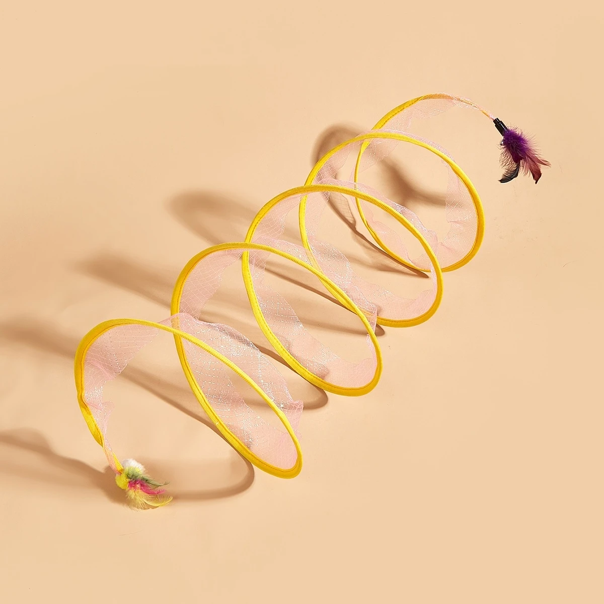 CARACTERÍSTICA:1. Túnel elástico plegable para gatos: los gatos pueden viajar libremente a través de él, ambos lados con los ratones y plumas favoritos del gato, respectivamente, pueden hacer que su gato ame más este juguete. No solo es un túnel, sino que también se puede usar como palo de burla.