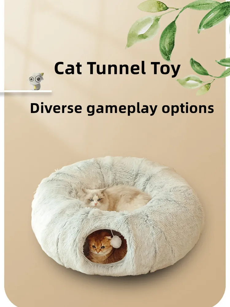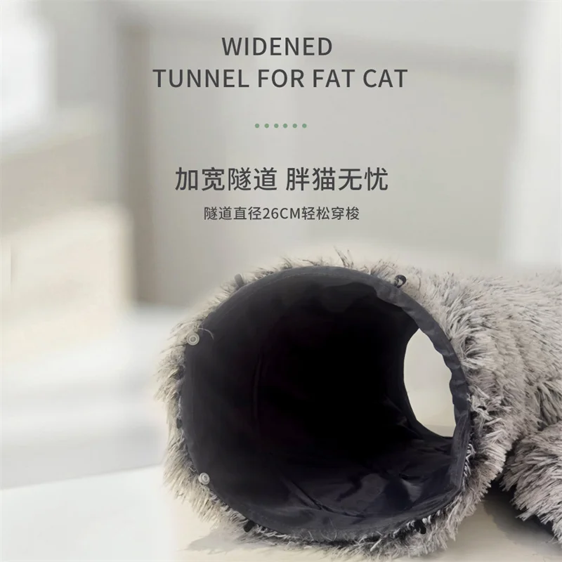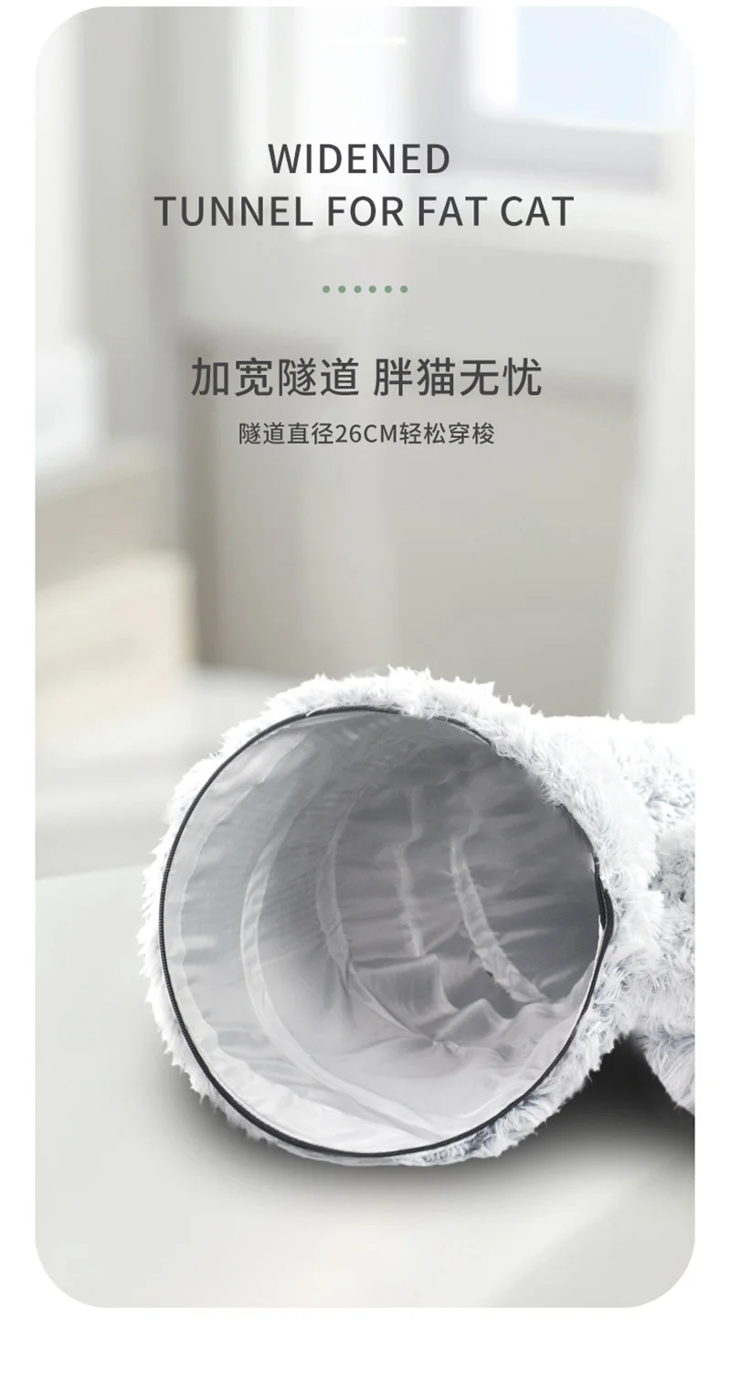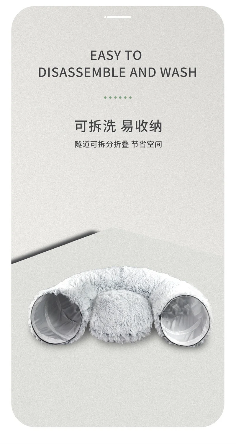 【Diversión interactiva】: las bolas de peluche colgantes diseñadas en la entrada pueden atraer a los gatos para que entren en el túnel para jugar, lo cual es muy adecuado para que un gato se entretenga en casa, para que los gatos ya no se sientan solos ni aburridos;El diseño de entradas múltiples es muy adecuado para que varios gatos persigan, jueguen y descansen.