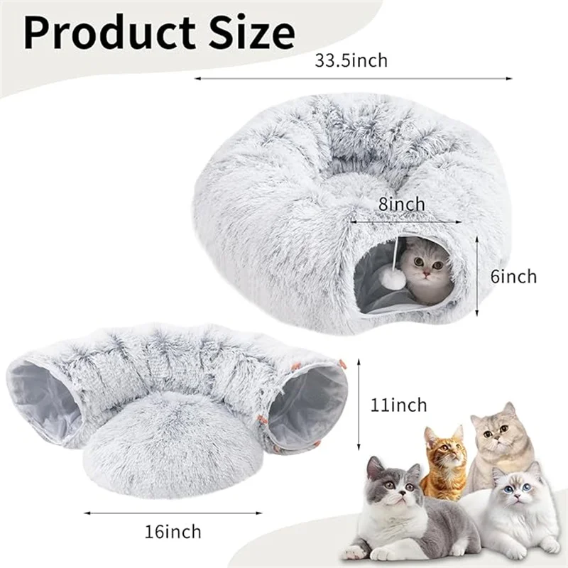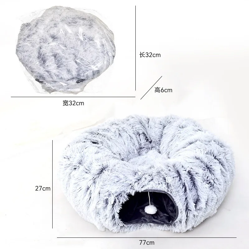 Estructura estable y cómoda: la cama tipo túnel para gatos está compuesta por dos túneles y un cojín suave.El túnel está compuesto por resistentes alambres de acero y tela de felpa: los resistentes alambres de acero garantizan que el túnel no se deforme fácilmente y que la tela de felpa sea cálida y cómoda.
