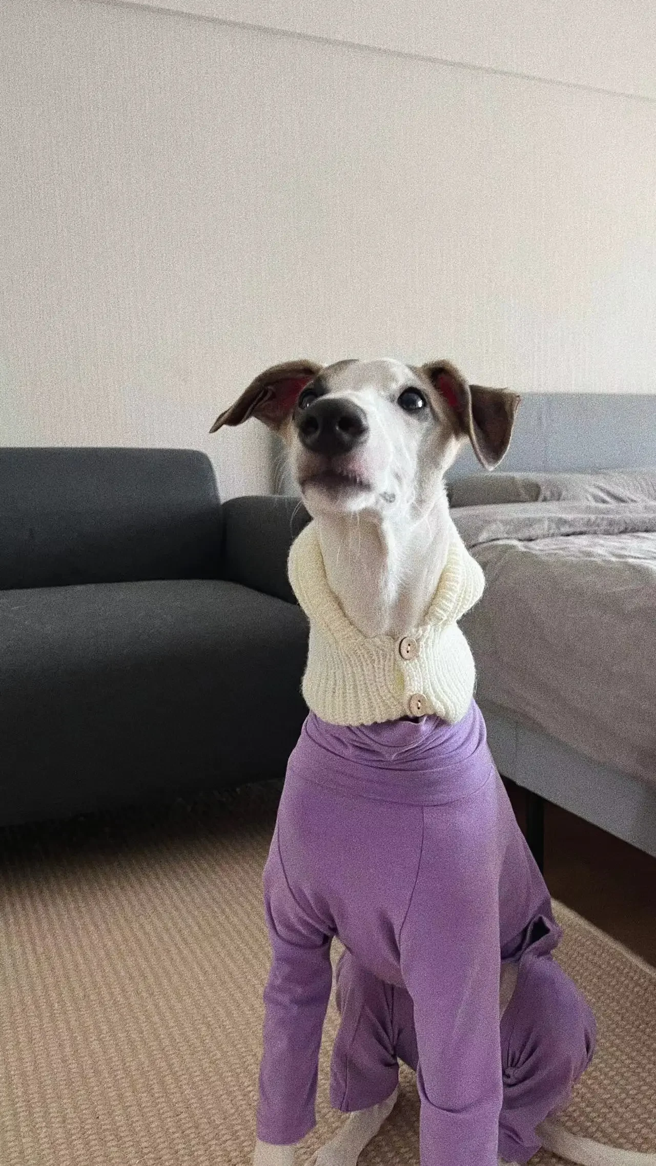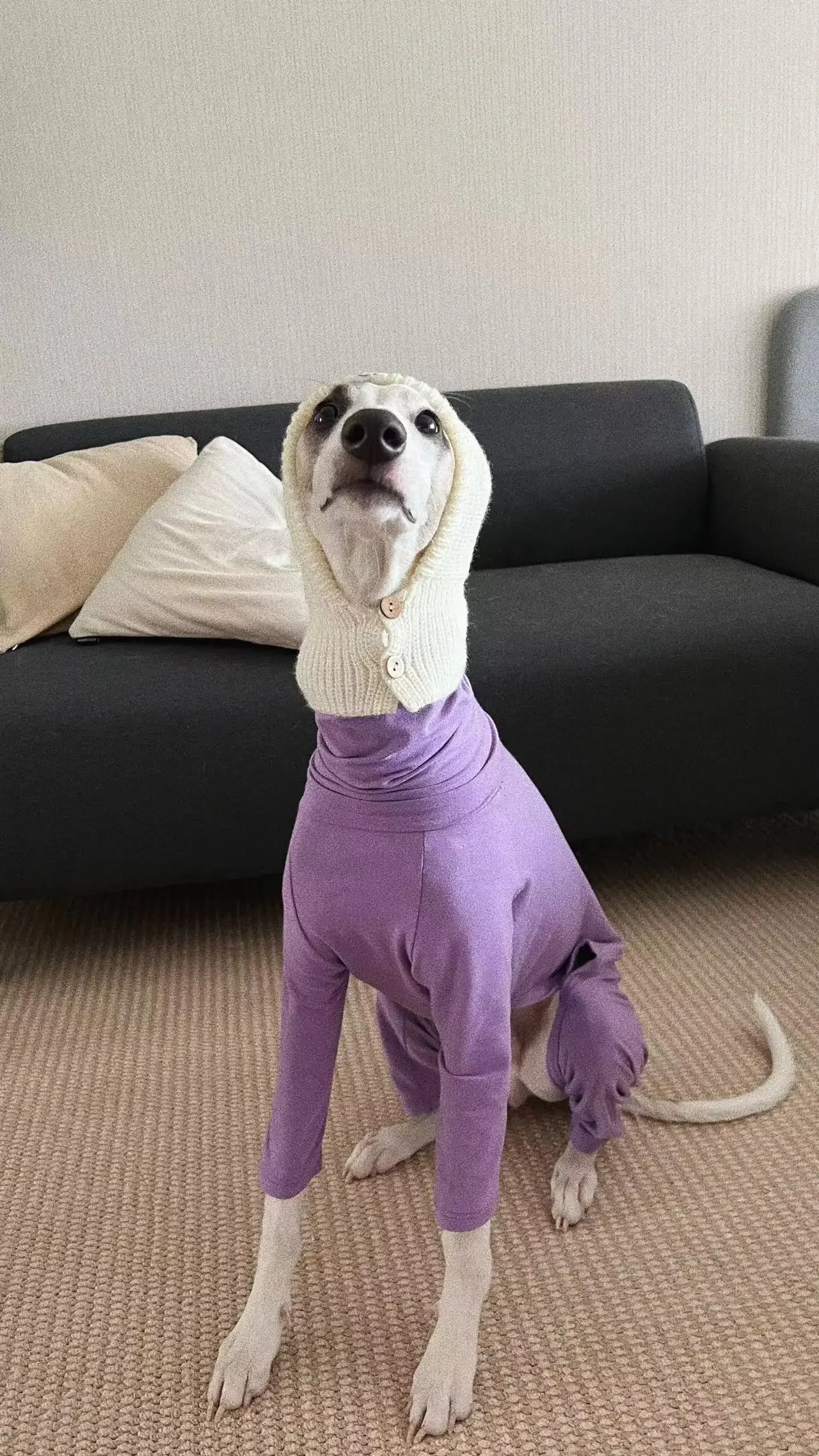 Turtle Collar Greyhound Clothes, Purple Whippet Wear, Cotton, Stretch, Soft, Four Legs
