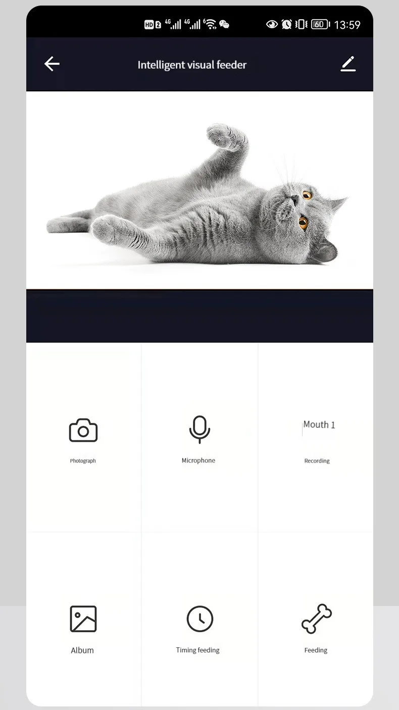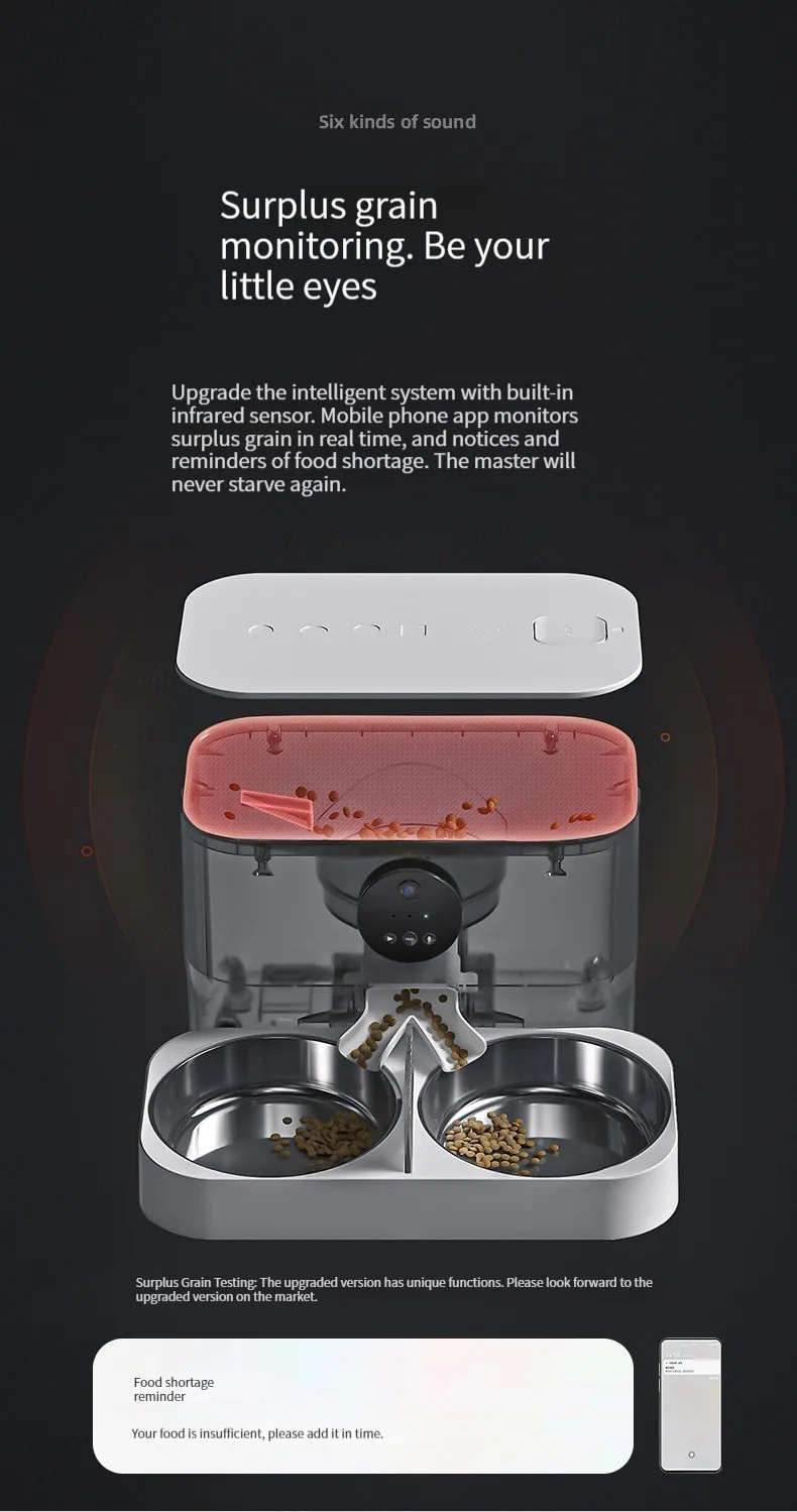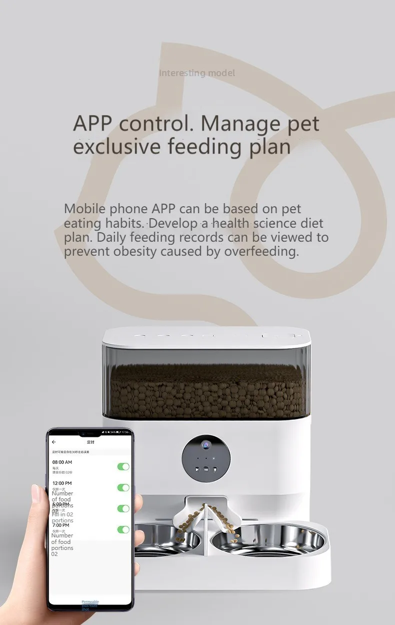 6.Alimentación remota del teléfono móvil: control del teléfono móvil, alimentación manual 1 porción cada vez, alimentación instantánea