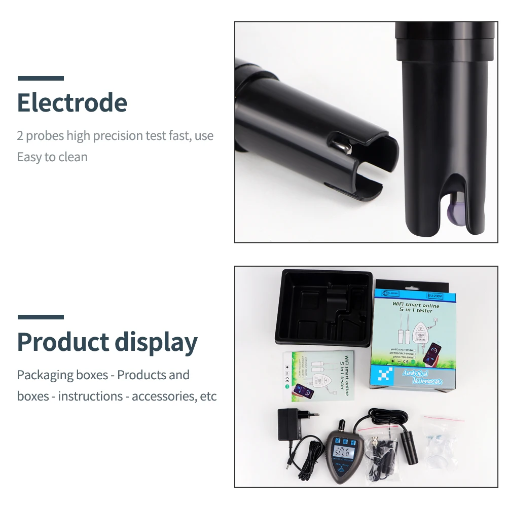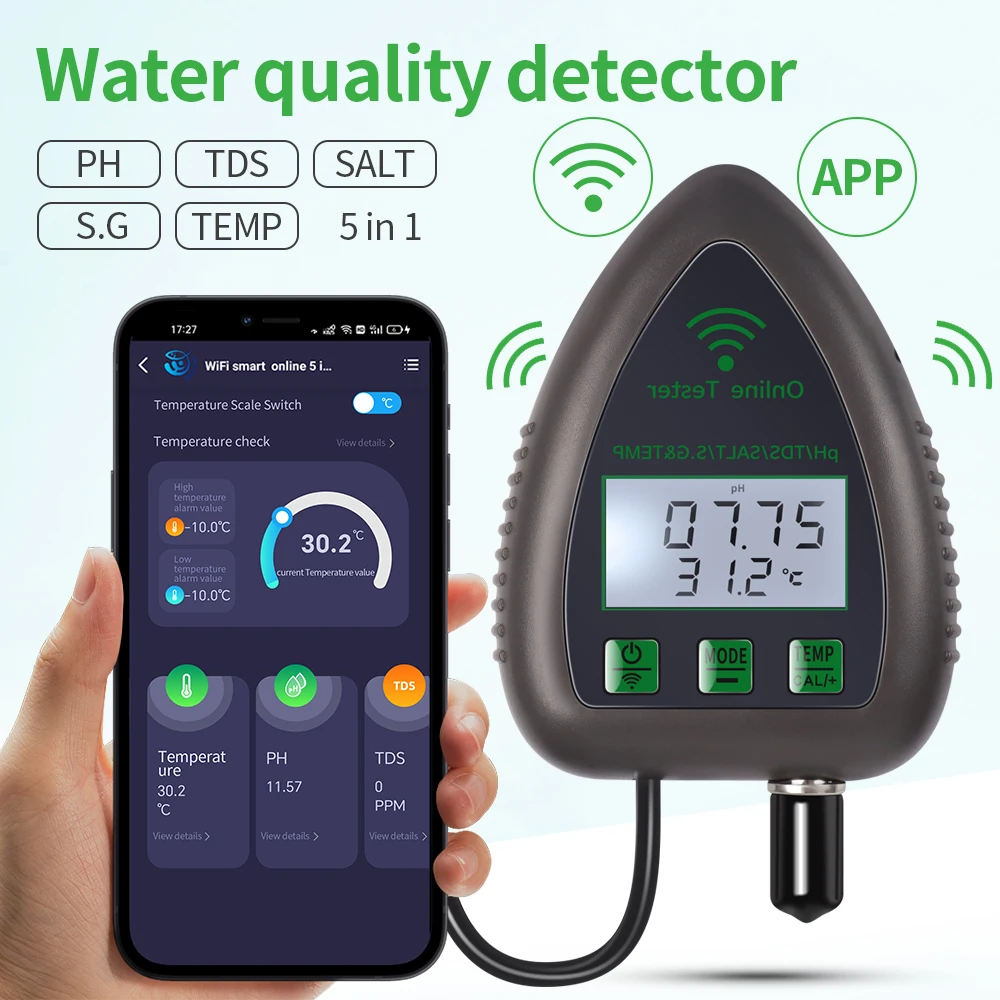 Tuya WiFi 5 en 1 Monitor de Calidad del Agua TDS/EC/SALT PH S.G. Analizador de agua multifunción Bluetooth TEMP para acuarios Acuicultura