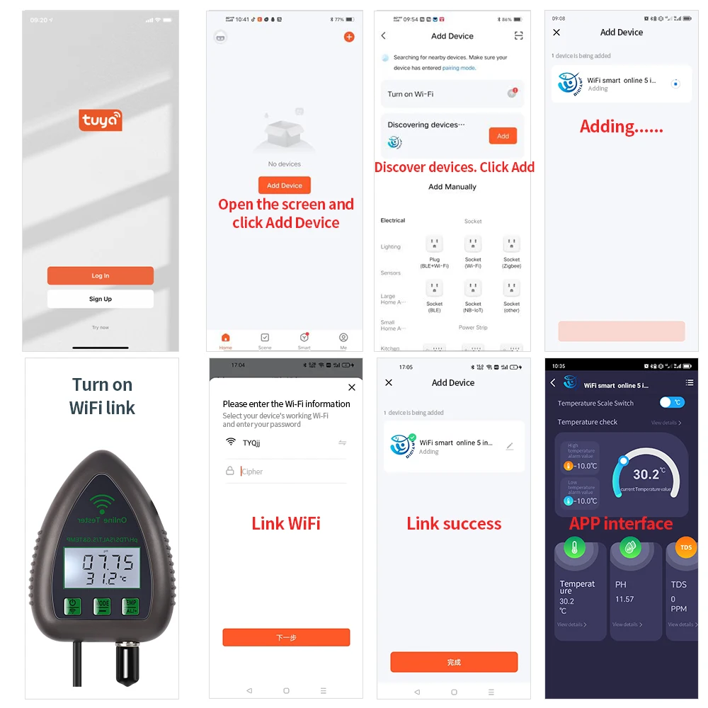 El Analizador de calidad del agua se puede utilizar para distinguir entre agua potable y agua no potable, y puede analizar el agua de Acuario, hidroponía, piscina, estanque, laboratorio, etc.