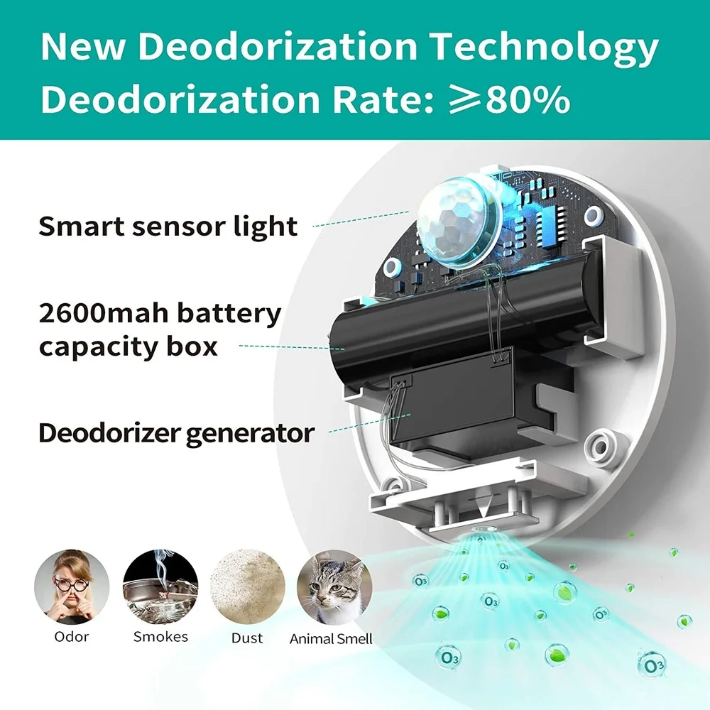 4. Cuando el gato se acerque al desodorizador de la caja del gato, se apagará automáticamente el desodorizador, lo que no molestará ni asustará a su gato. Cuando el gato se vaya, el producto se encenderá automáticamente sin necesidad de abrirlo.