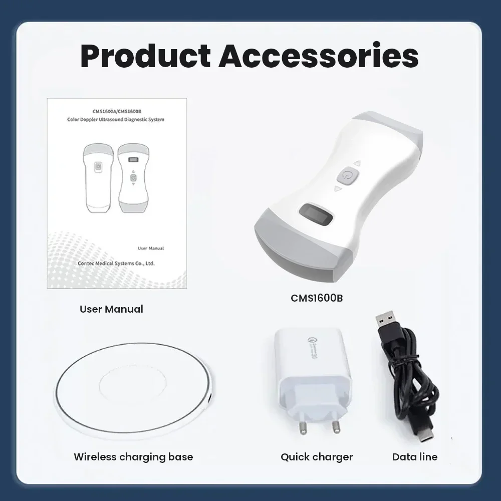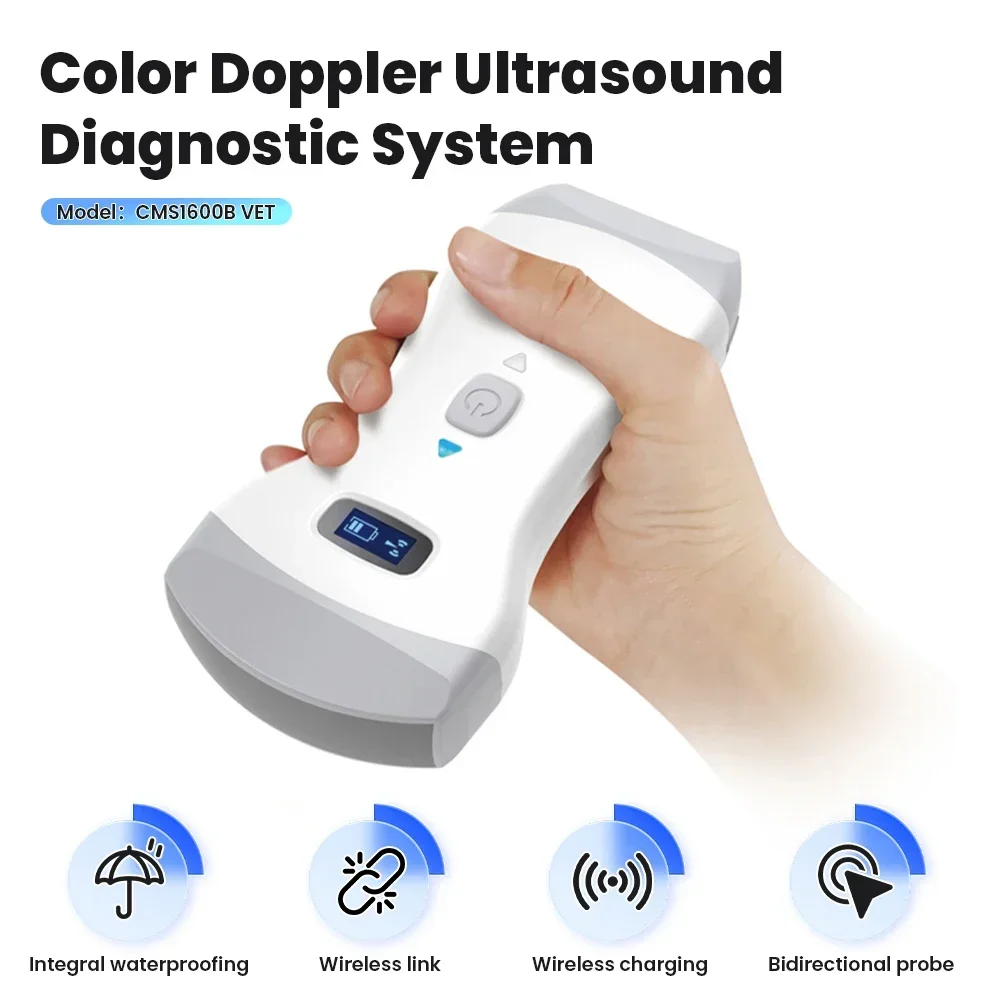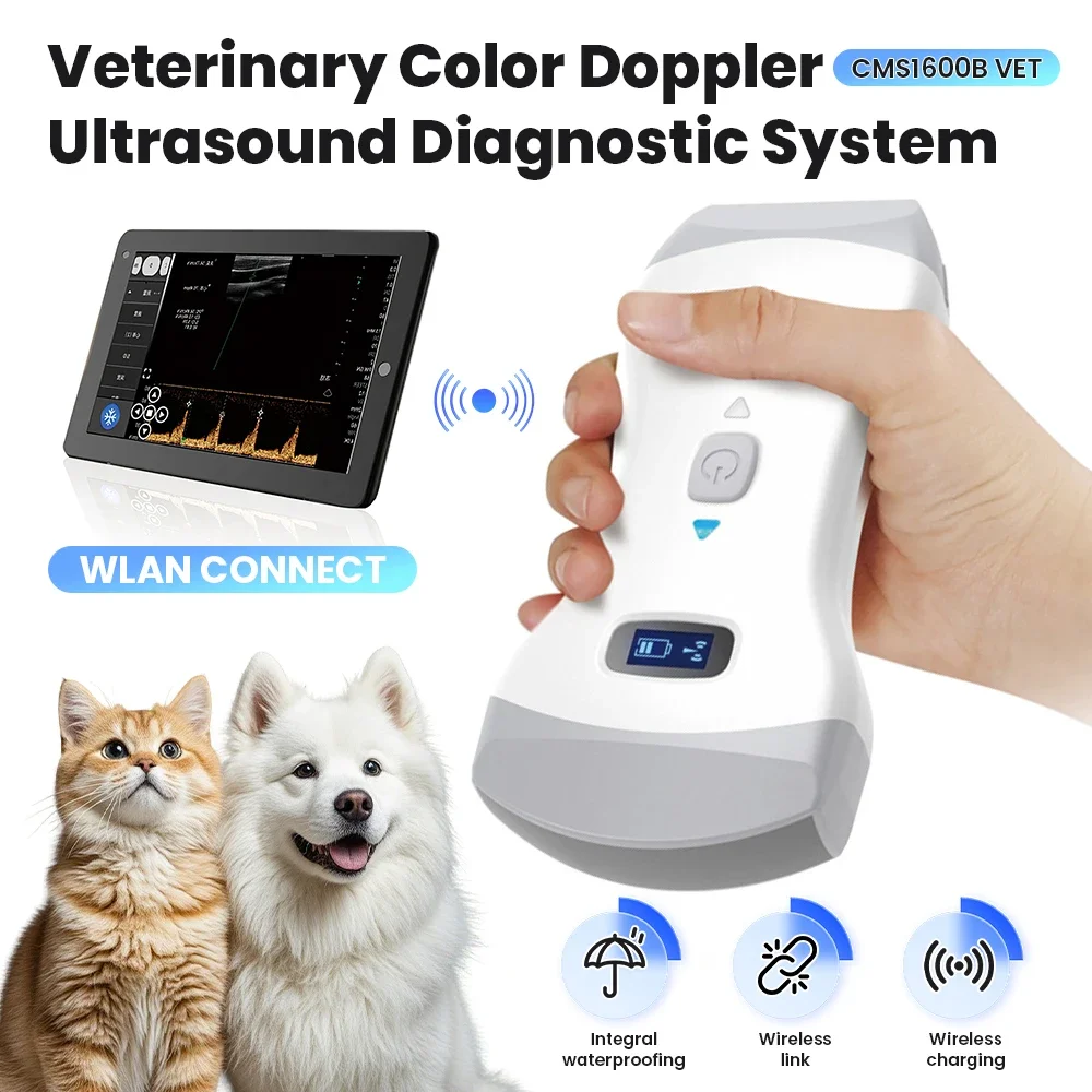 1X CMS1600B Máquina de ultrasonido veterinaria Doppler color inalámbrica de doble sonda (HUMANO O VET Opcional)