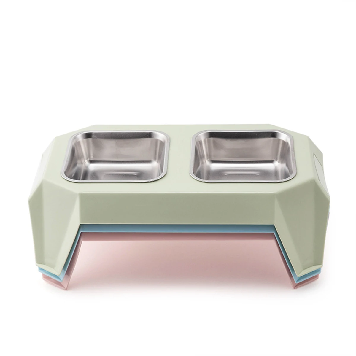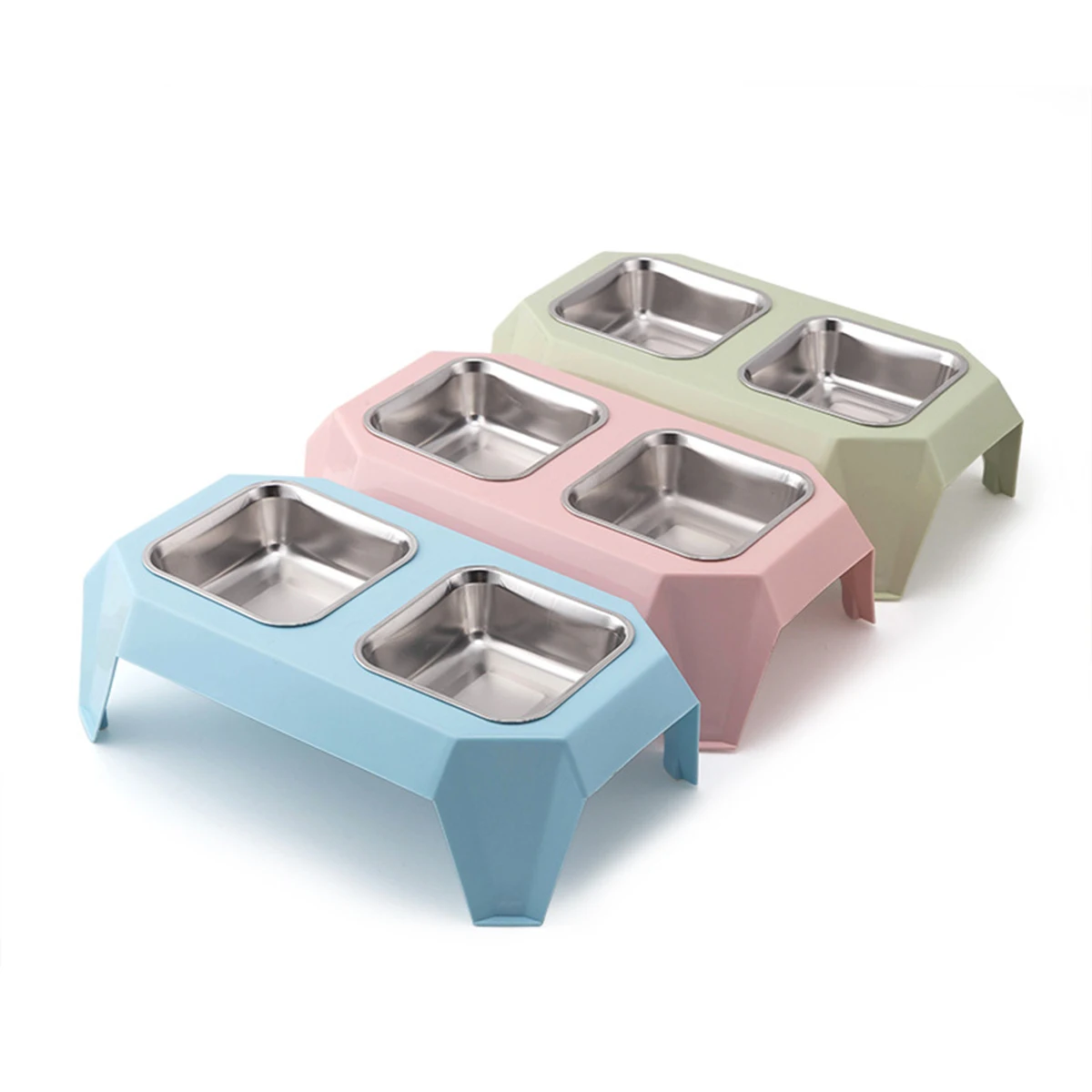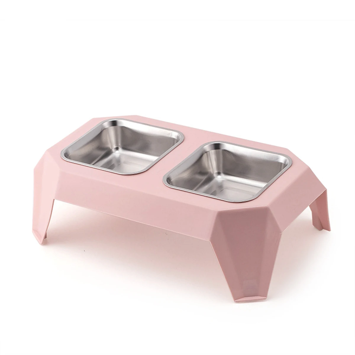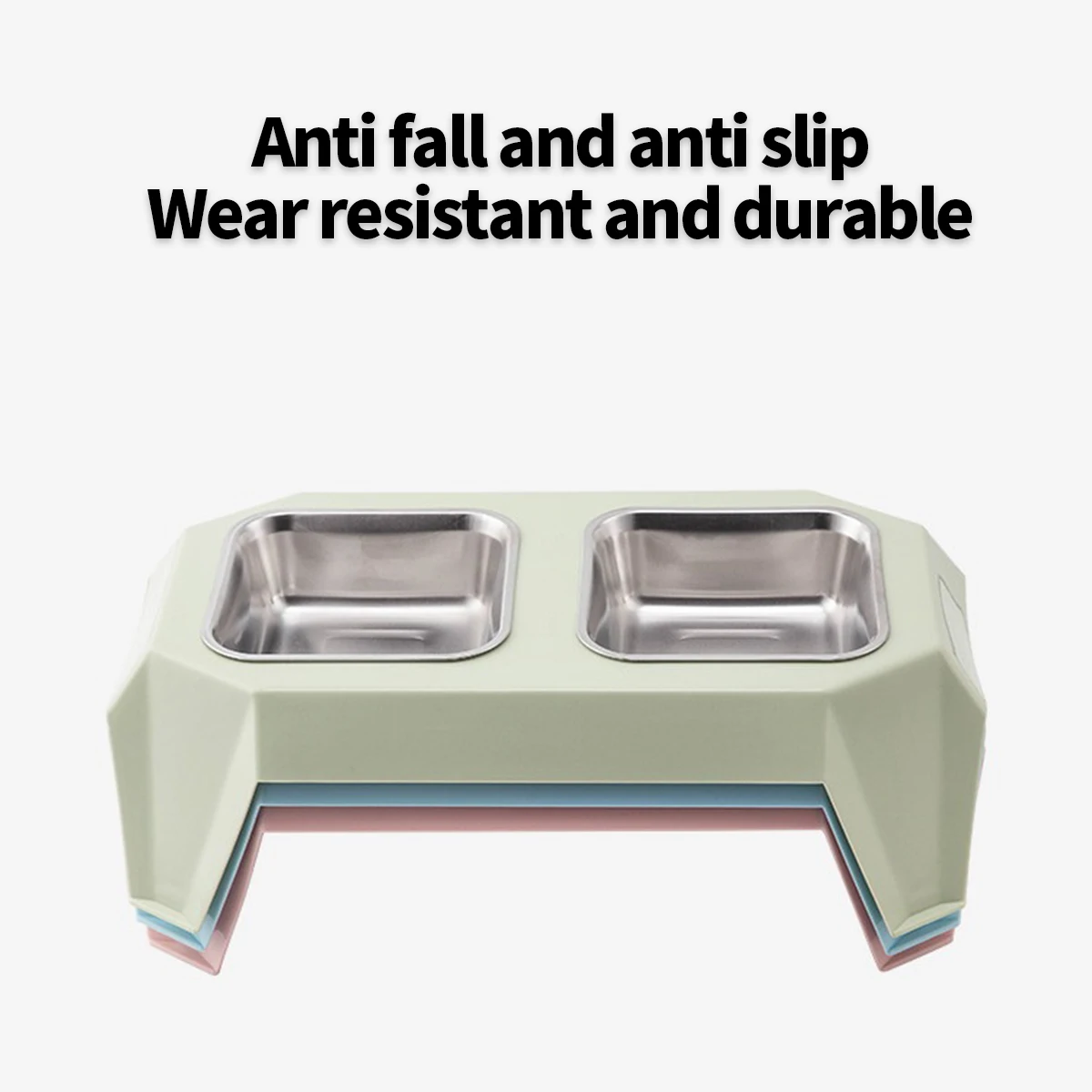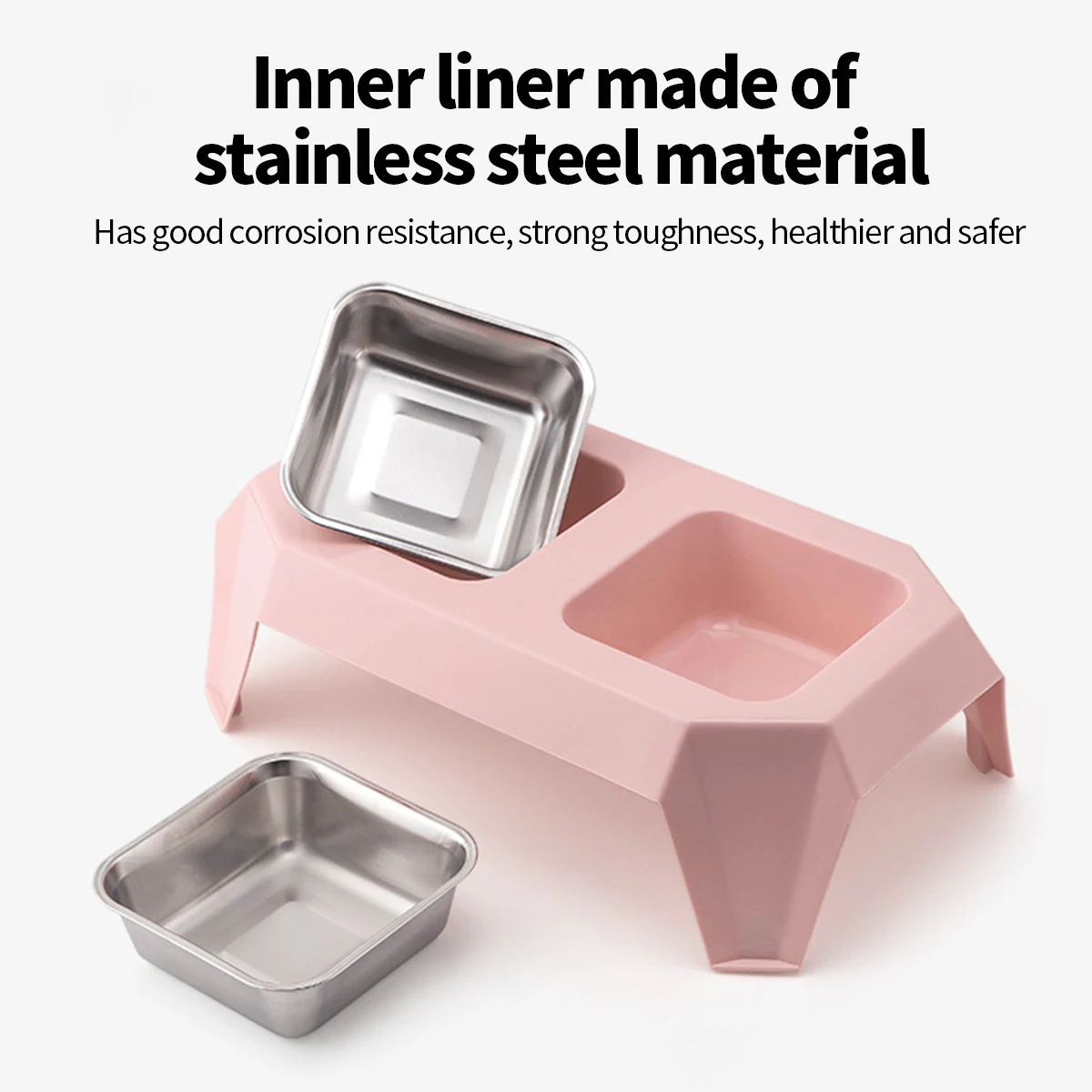 Una pieza de cuenco para mascotas de gran capacidad de acero inoxidable de color caramelo para alimentar y agua, cuenco para gatos con patas altas y protección para el cuello,