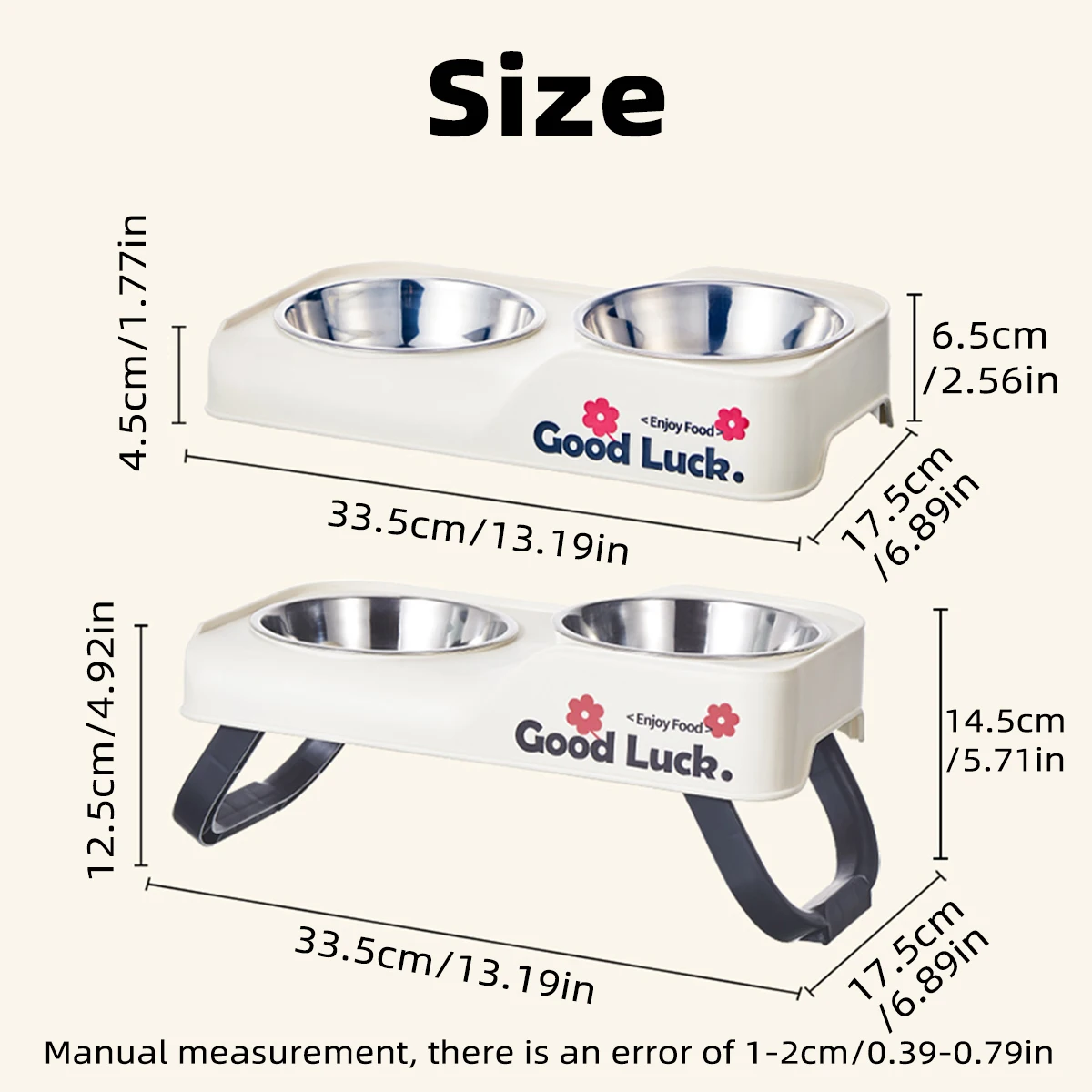 Una pieza de dopamina, cuenco doble plegable de acero inoxidable, boca anti-punta y anti-negro, cuenco para mascotas de acero inoxidable, cuenco para perros y gatos b