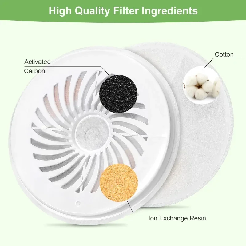 ��[Filtros de calidad superior] Los filtros de fuente de agua para mascotas tienen un sistema de filtración de 4 capas, capas de tela no tejida de algodón de alta densidad, pelos más fríos y residuos;Las partículas de carbón activado pueden eliminar el cloro y el olor;Resina de intercambio iónico, puede filtrar metales pesados y mejorar el sabor;La rejilla ABS puede detener el pelo y las impurezas grandes, mantener el agua limpia, saludable y sabrosa para sus mascotas.