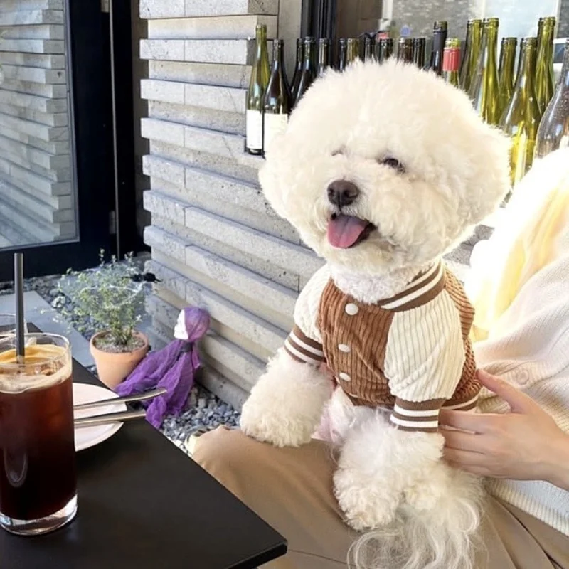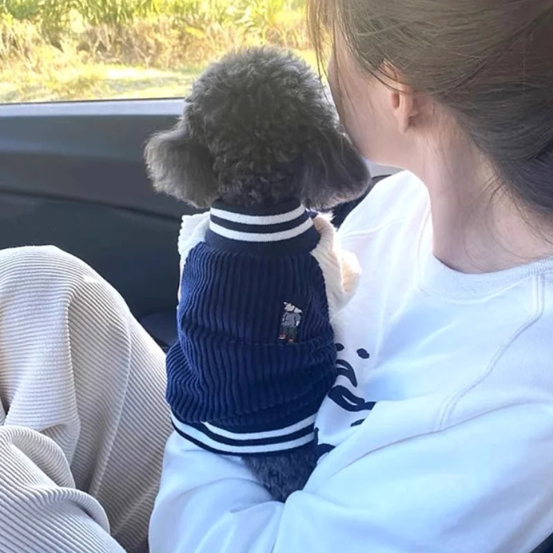 Uniforme de béisbol con bordado de dibujos animados para perros, ropa cálida de invierno para perros, chaqueta para cachorros a la moda, abrigo grueso y suave para gatos, disfraces para mascotas