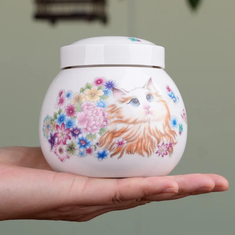 Urna para cenizas de cerámica para gatos, recuerdo de cremación, urnas conmemorativas aprobadas para cenizas de mascotas, tarro sellado, memoria funeraria, urna para mascotas, recuerdo decenido