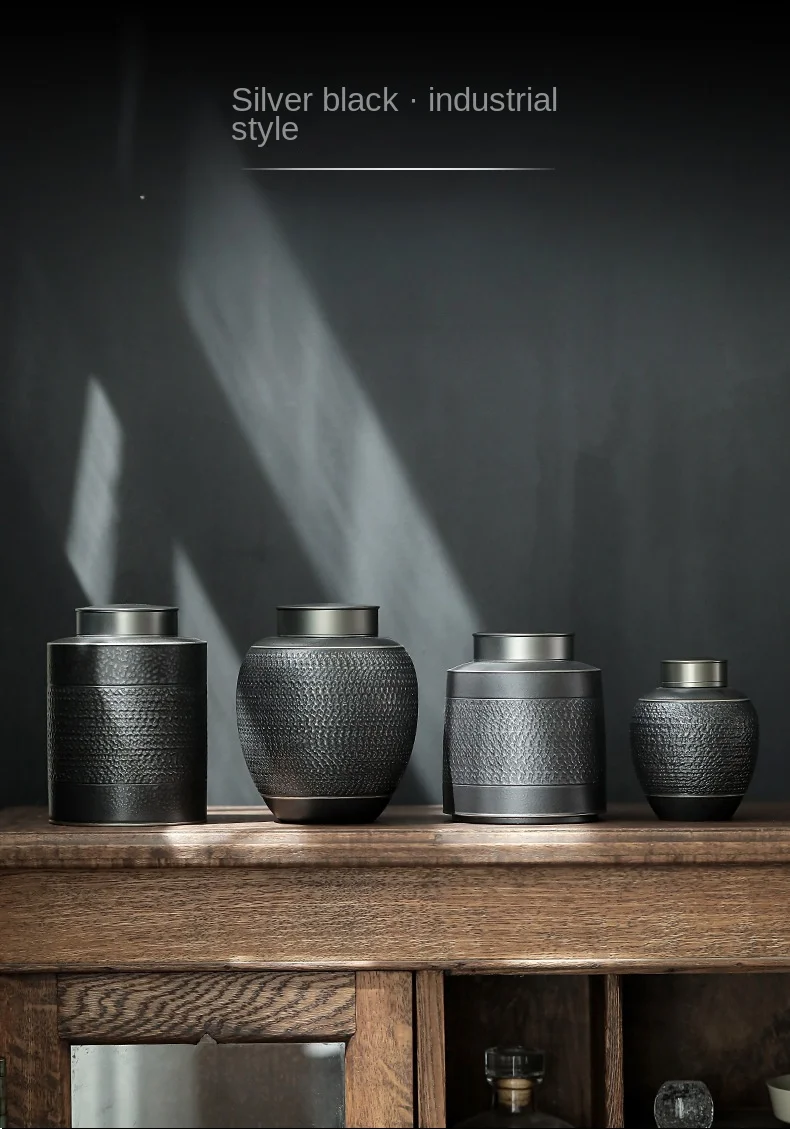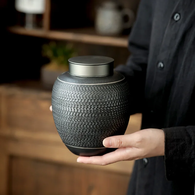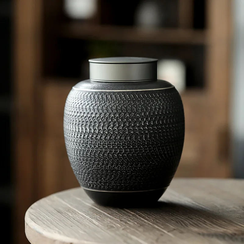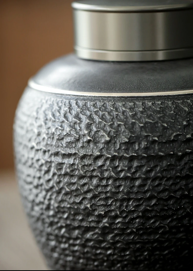 Urna de cerámica negra para mascotas, patrón creativo, urnas únicas para mascotas, cremación, supervivencia a su mascota, adecuada para perros, gatos, almacenamiento gris Ta