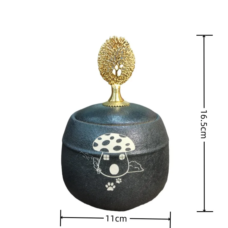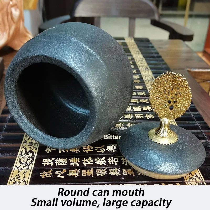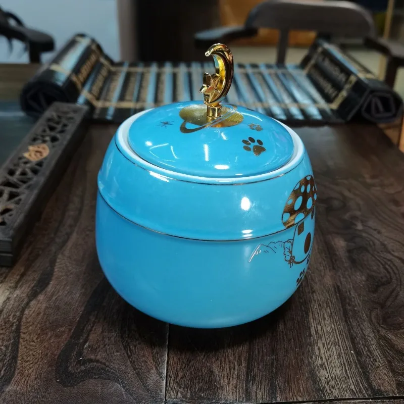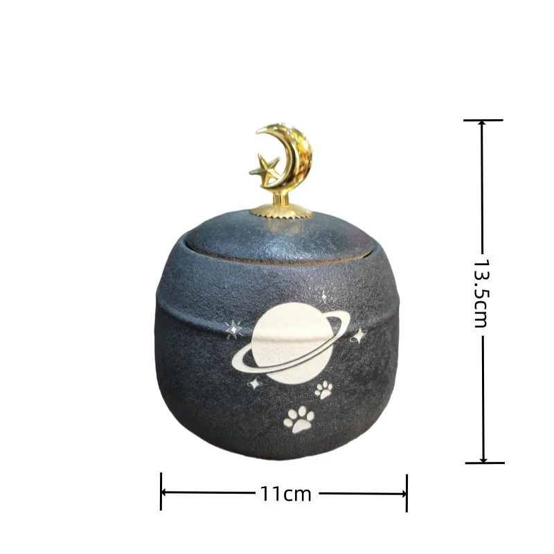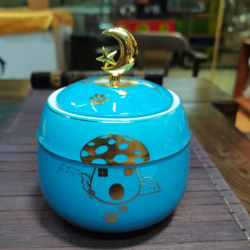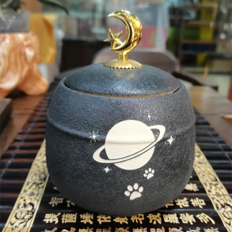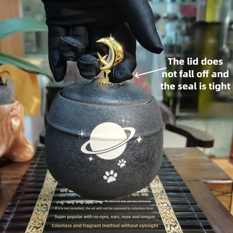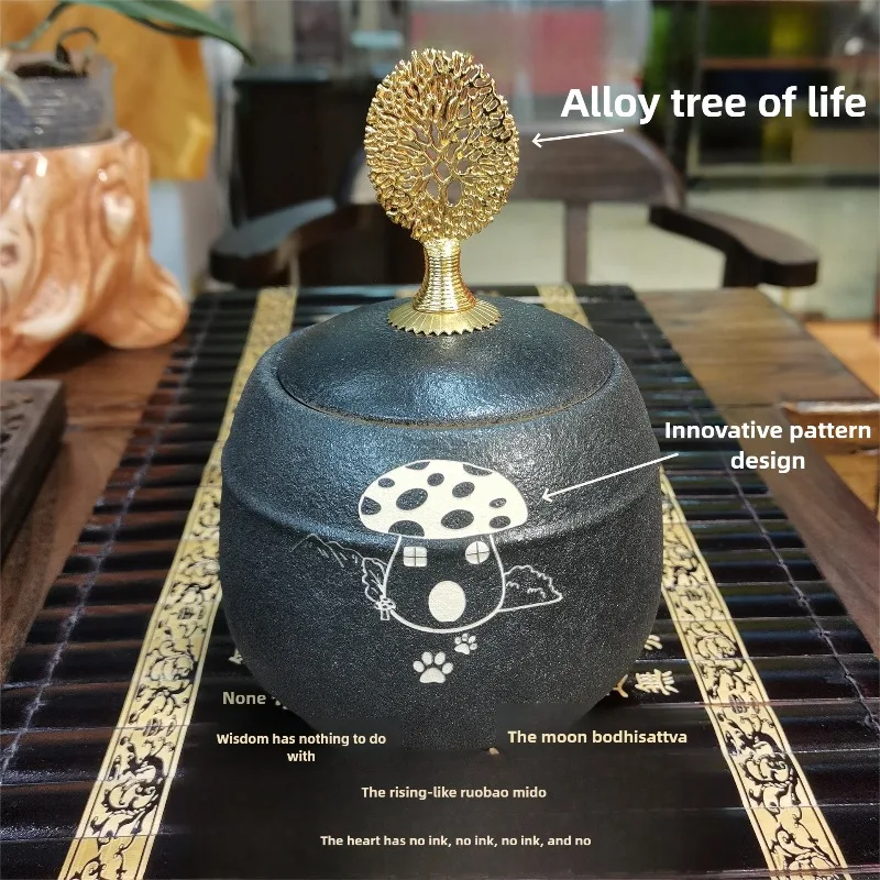 Material: cerámica, cerámica gruesaLevante la tapa sin que se caiga y selle herméticamenteDiseño de árbol de la vida/estrella y luna de aleación tridimensionalLos patrones utilizan efectos de microrrelieve.Proceso de cerámica gruesaDiseño de patrón innovadorBoca redonda de lataPequeño volumen y gran capacidad.