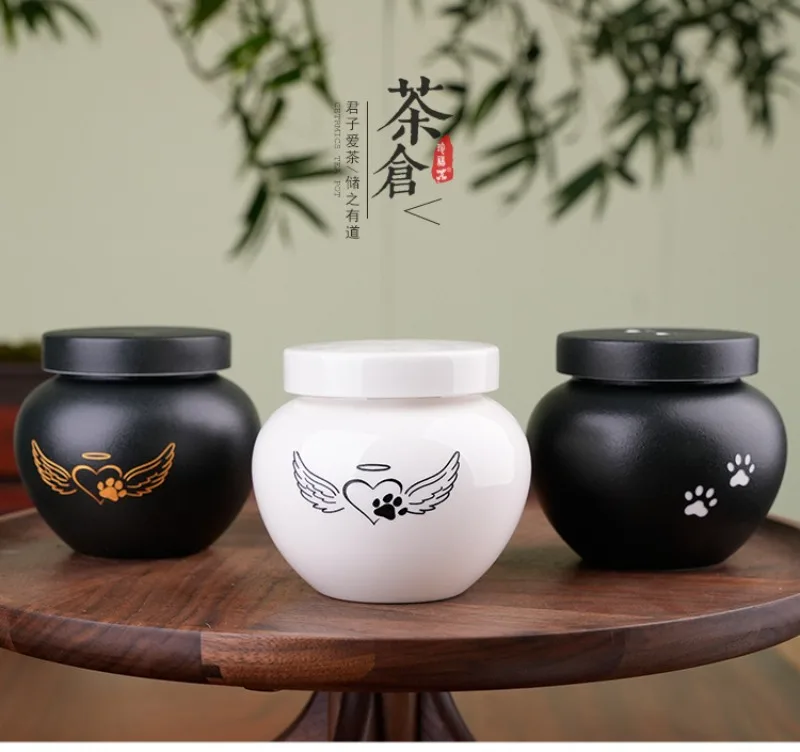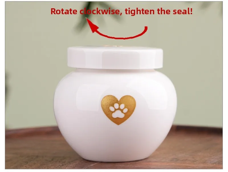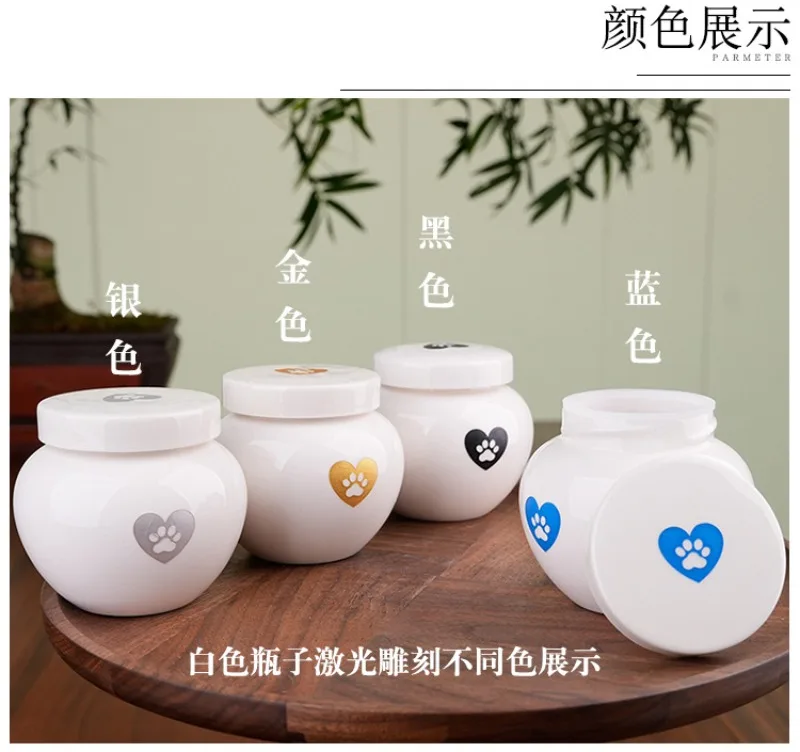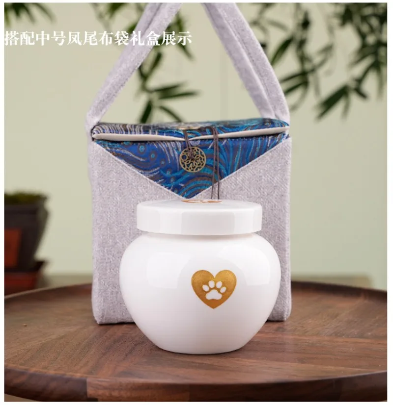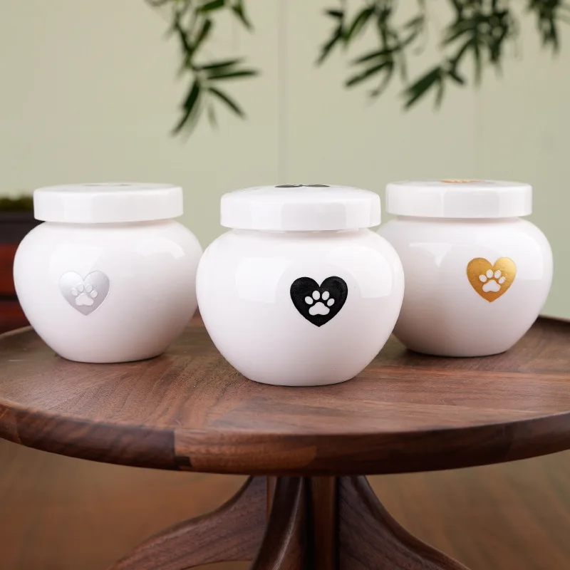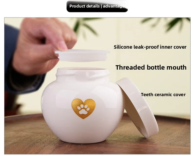 Urna pequeña para mascotas, tarro de cerámica con estampado de pata de gato, cubierta interior de silicona funeraria, ataúd de cerámica sellado a prueba de fugas, productos para recuerdos de mascotas