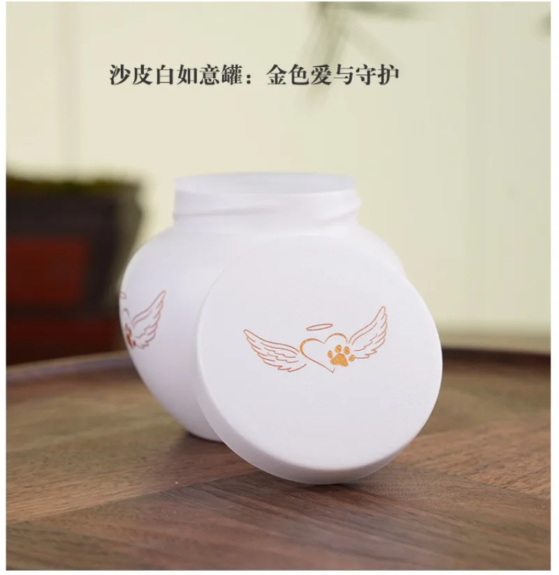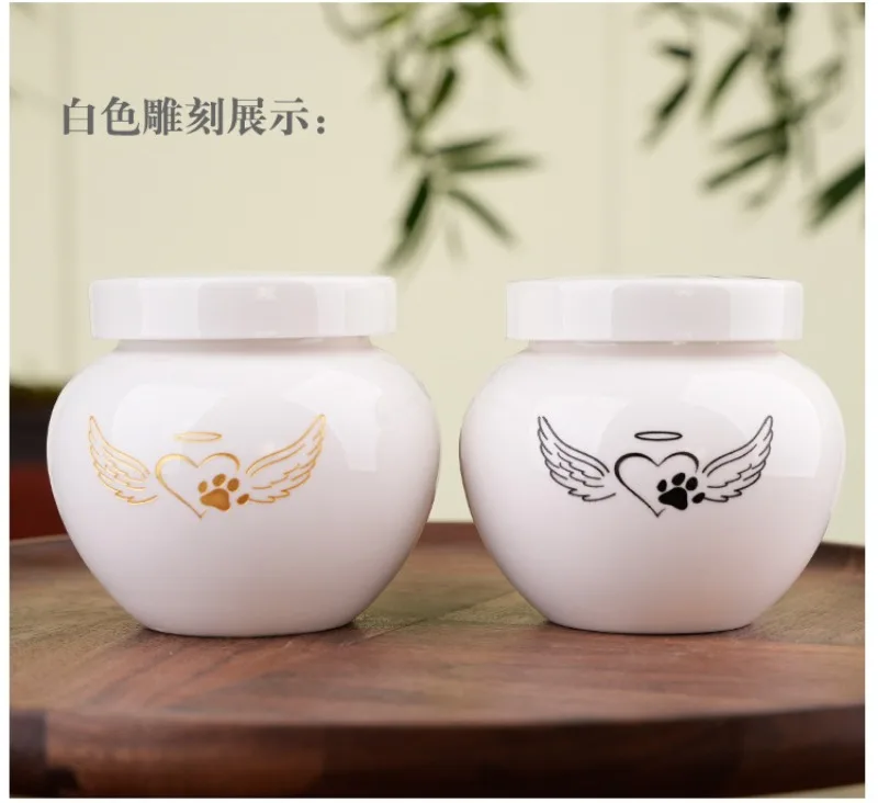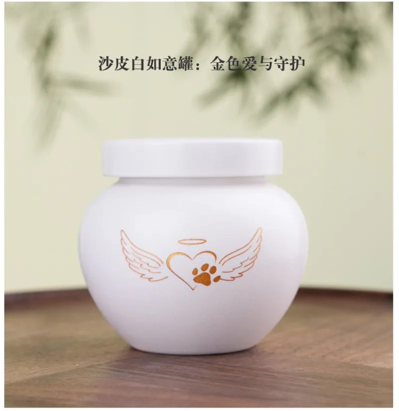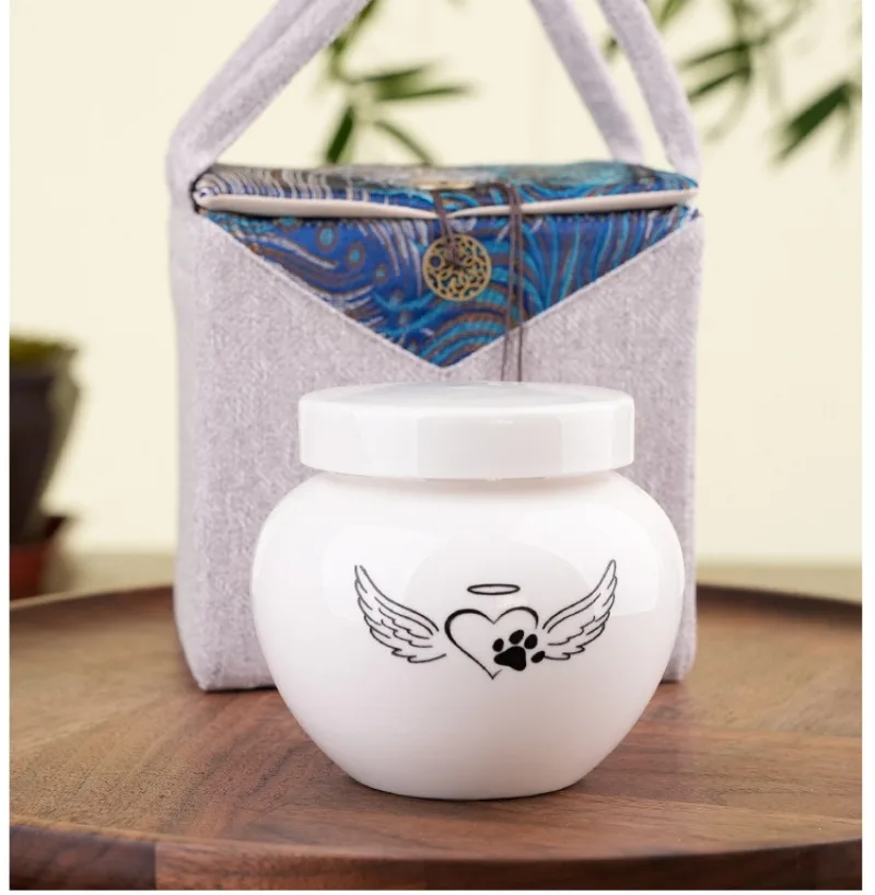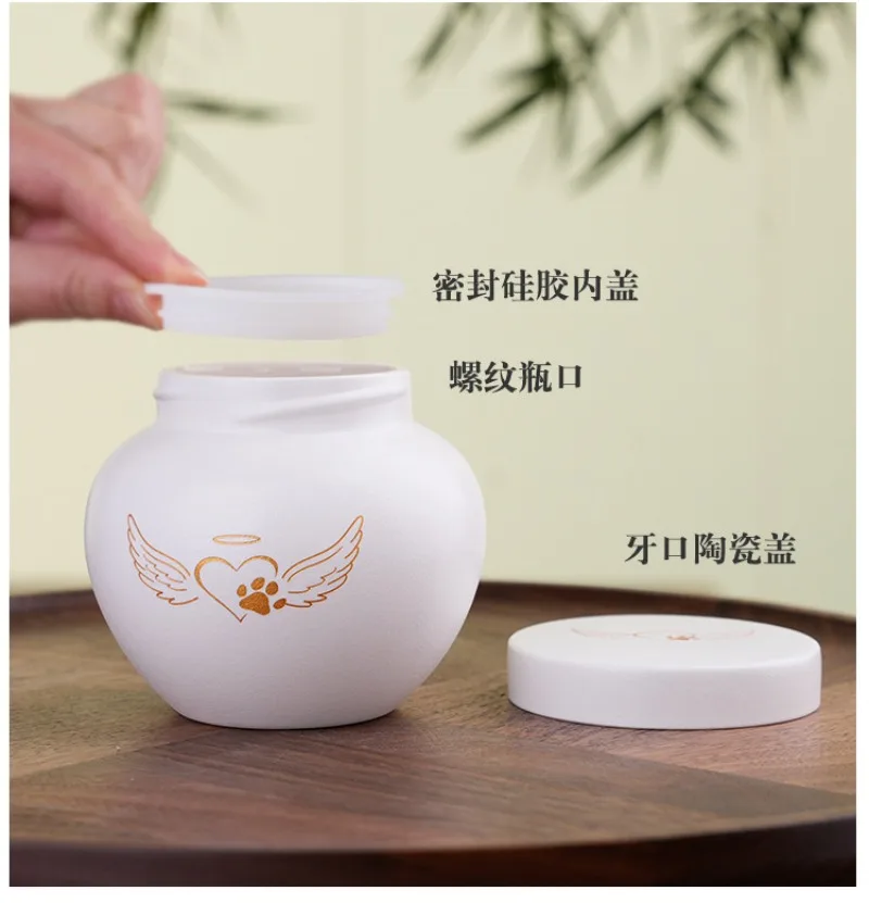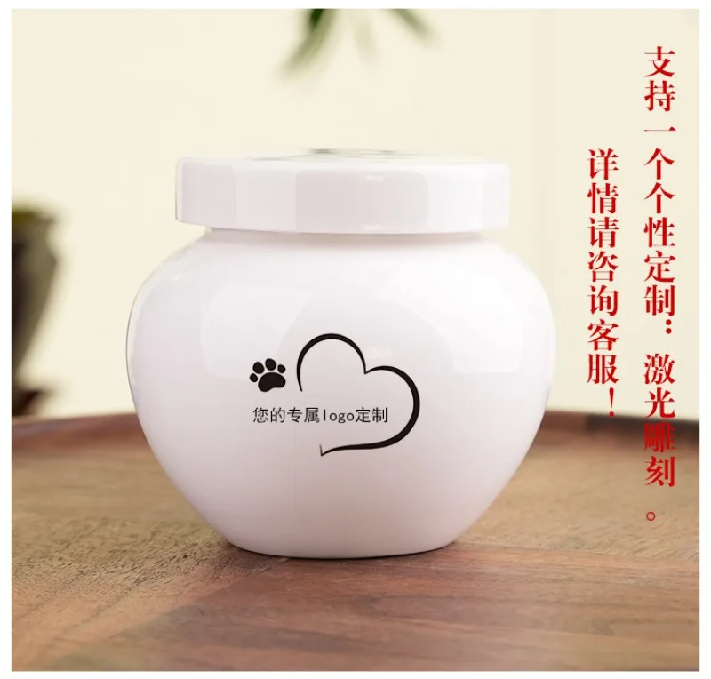 Urna pequeña para mascotas, tarro de cerámica con estampado de pata de gato, cubierta interior de silicona funeraria, ataúd de cerámica sellado a prueba de fugas, productos para recuerdos de mascotas
