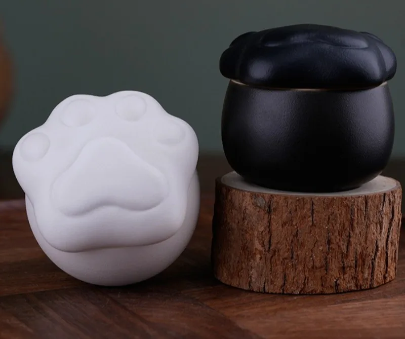 Urnas Retro de cerámica gruesa con forma de pata de gato para cenizas de mascotas, memoriales funerarios, urna de ceniza para mascotas muertas, recuerdo de cremación sellado de cerámica, urnas para gatos